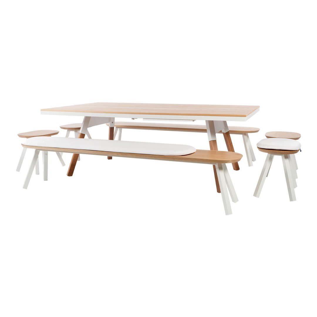 The You and Me benches are the perfect companions for the You and Me ping pong tables, created in order for you to get the very most out of your table after you’ve finished your ping-pong game. With this goal in mind, Antoni Pallejà Office designed a full set of benches, ranging in length from 285 cm – the same length as the longest table – to just 50 cm, as simple and practical as a stool. The Iroko finishes are suitable for both outdoor and indoor use, recommended for tables with HPL and walnut wood tops, whlie the Oak versions are recommended for use with the Oak wood tops and are for indoor use only.