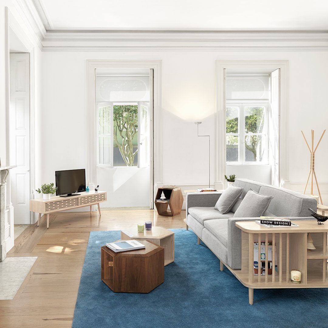 Made in solid wood and with its top in hexagonal shape, Hexa can be placed in horizontal and vertical positions, working as a simple coffee table but also as a side or bedside table.