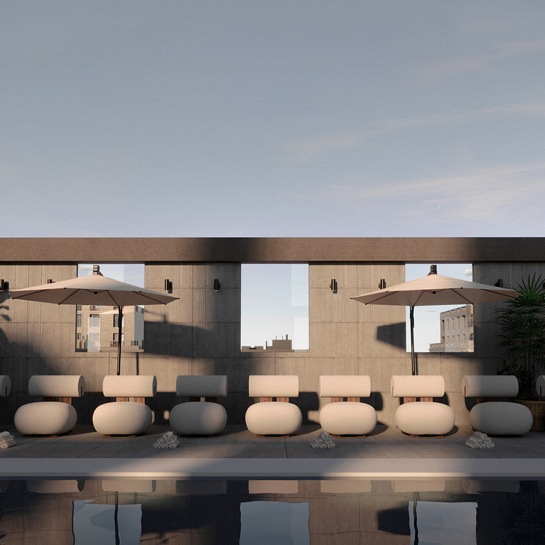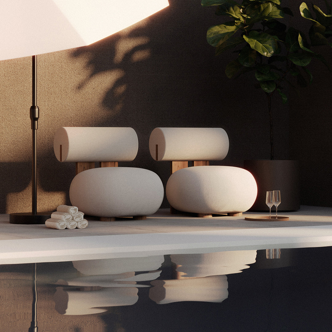 The Hippo Outdoor Lounge Chair is influenced by the Hippopotamus mammal drawing upon its barrel-shaped torsos. The characteristic wooden leg profile is made of thermotreated ash and the seat and back come in two upholstery options.