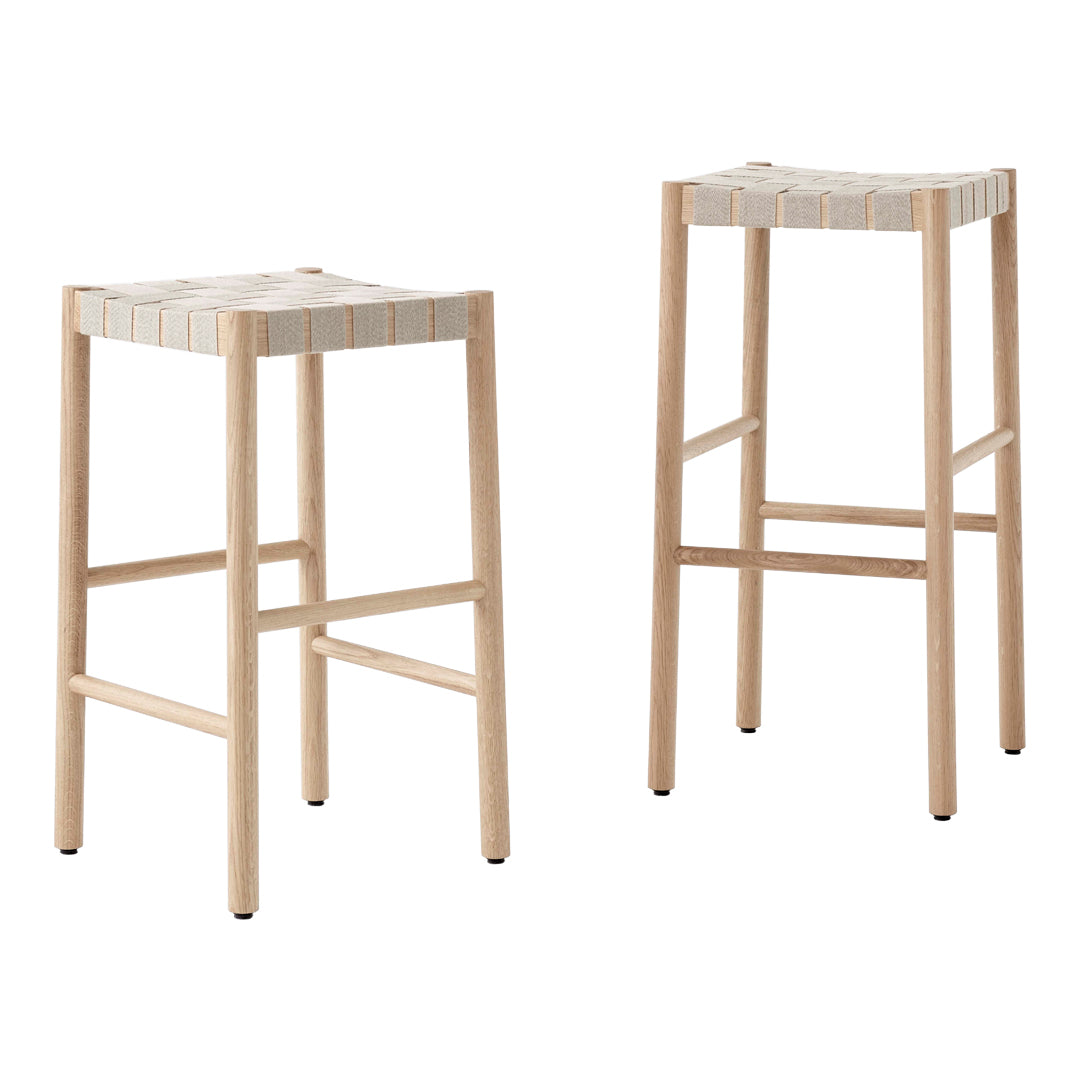 Named after the Betty Nansen theatre in Copenhagen, this stool’s sturdy frame is crafted from lacquered oak. The webbed seat – whose straps are made from natural linen fibres and woven by hand – offers a soft, cushioned base. The Betty stool is available in two heights and the choice of four colour combinations: Black lacquered ash with natural webbing; Lacquered solid oak with natural webbing; Lacquered smoked oak with natural webbing; and Black lacquered ash with black webbing.