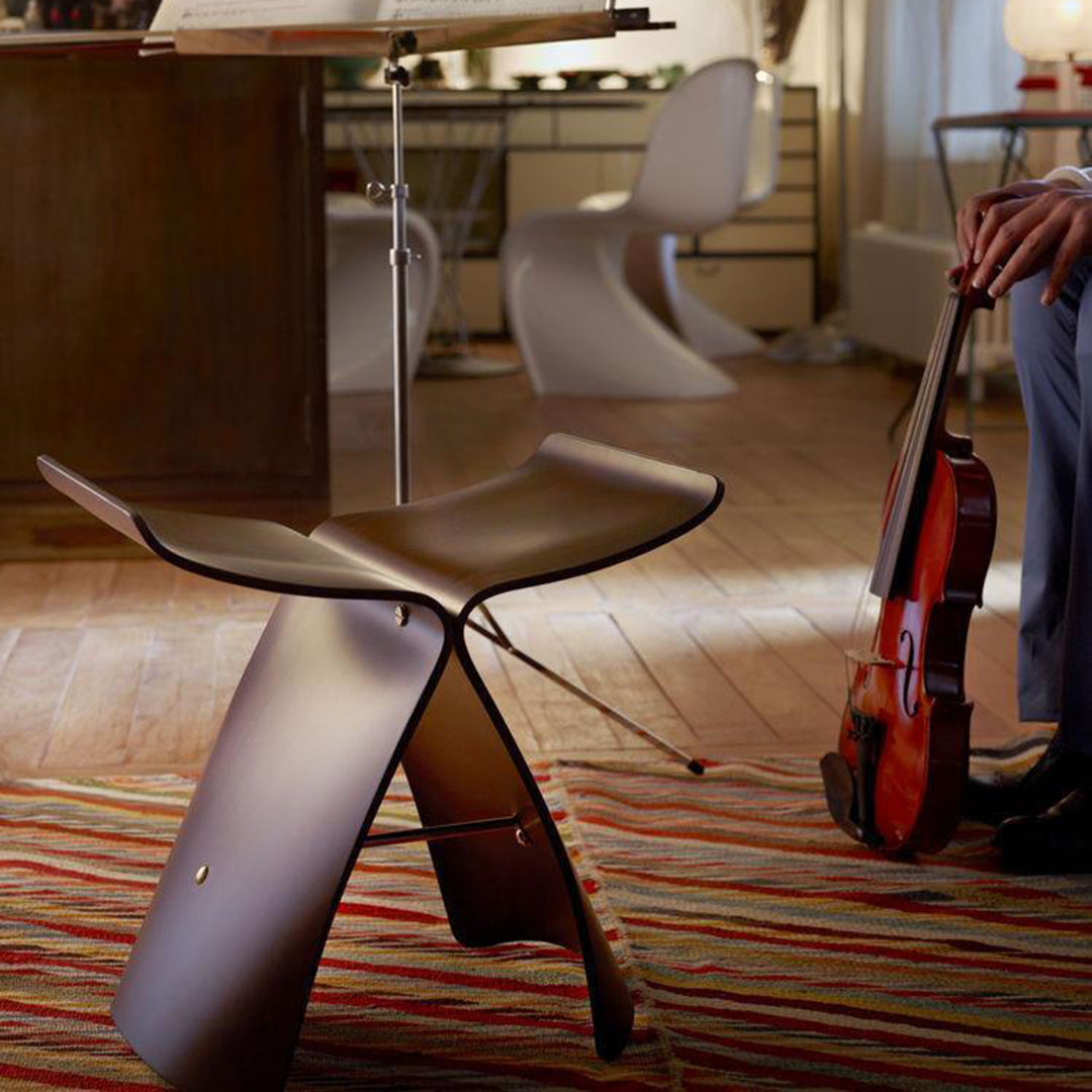 The iconic Butterfly Stool by the Japanese designer Sori Yanagi is a classic piece of furniture that uniquely combines Eastern forms with the plywood moulding technique developed by Charles and Ray Eames. The gently curving silhouette of the twin seat shells is reminiscent of a butterfly's wings - eternally poised for flight. The stool is made of maple or palisander wood.