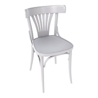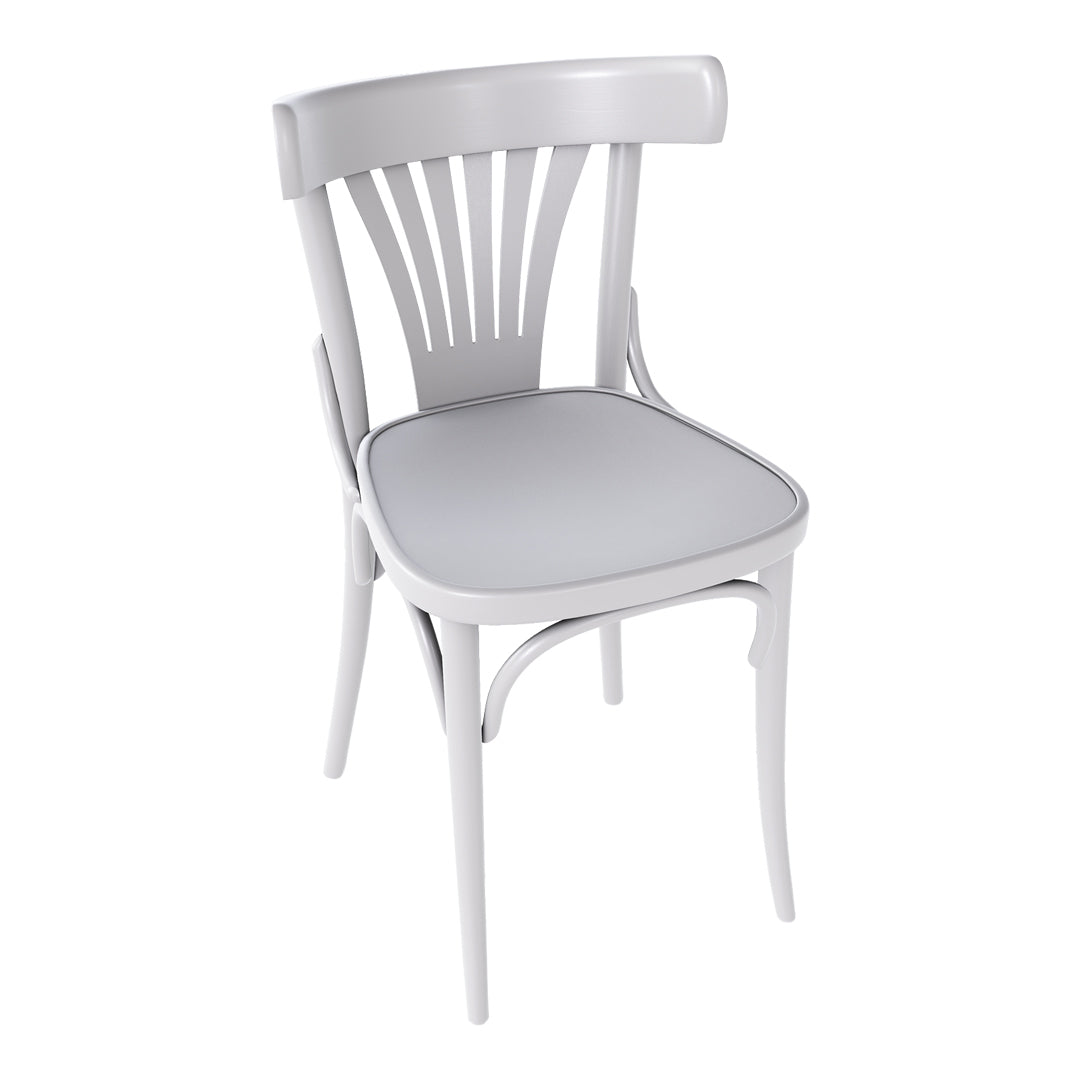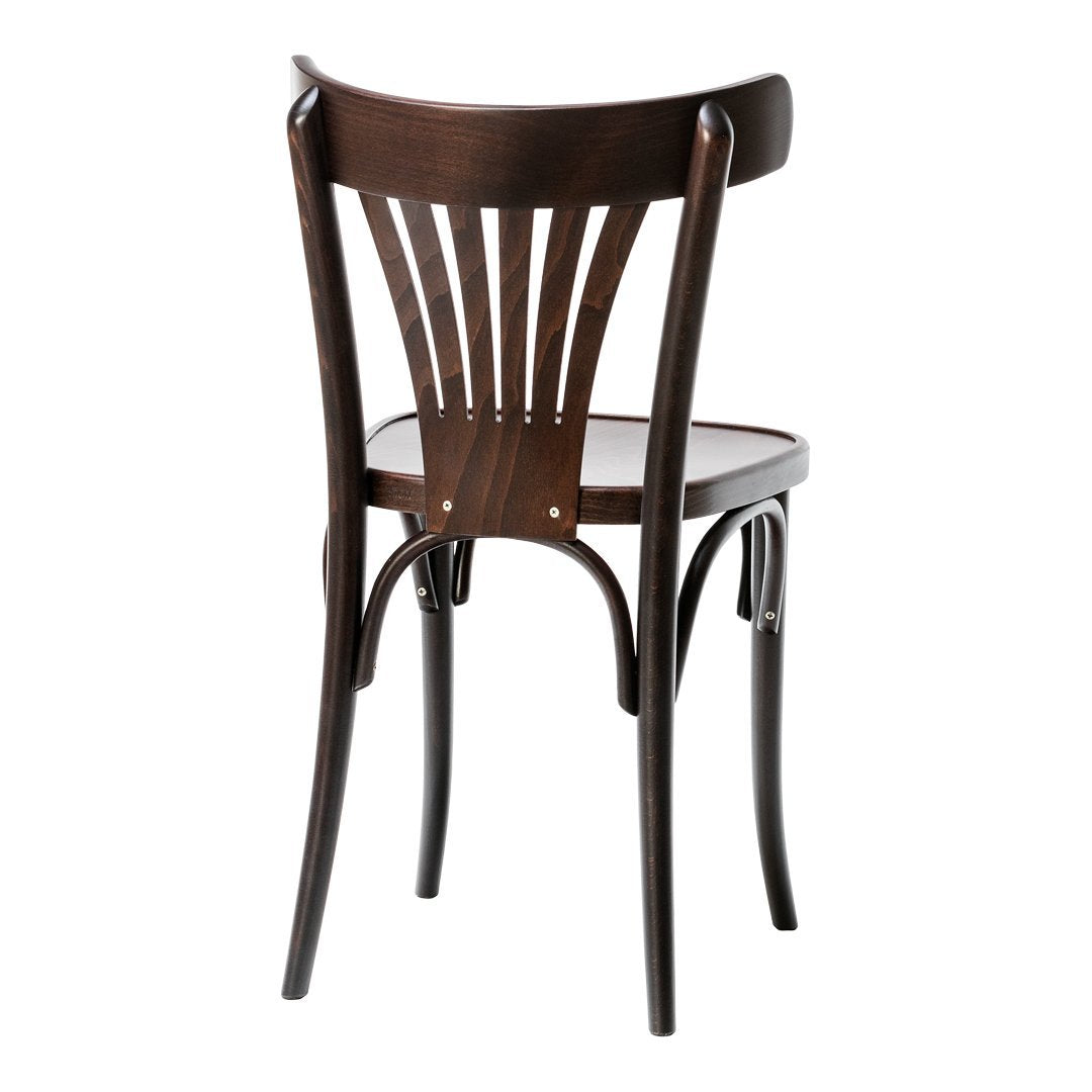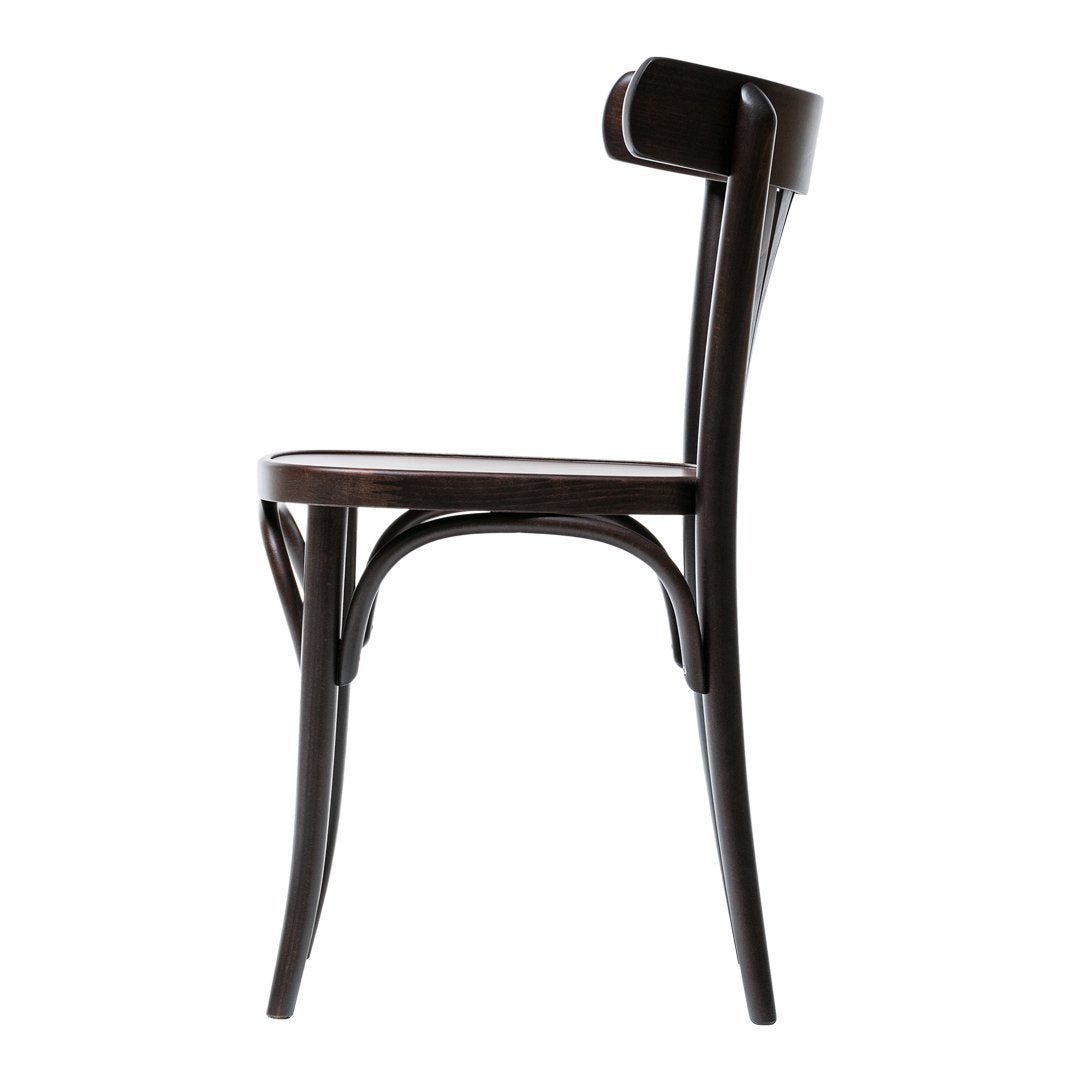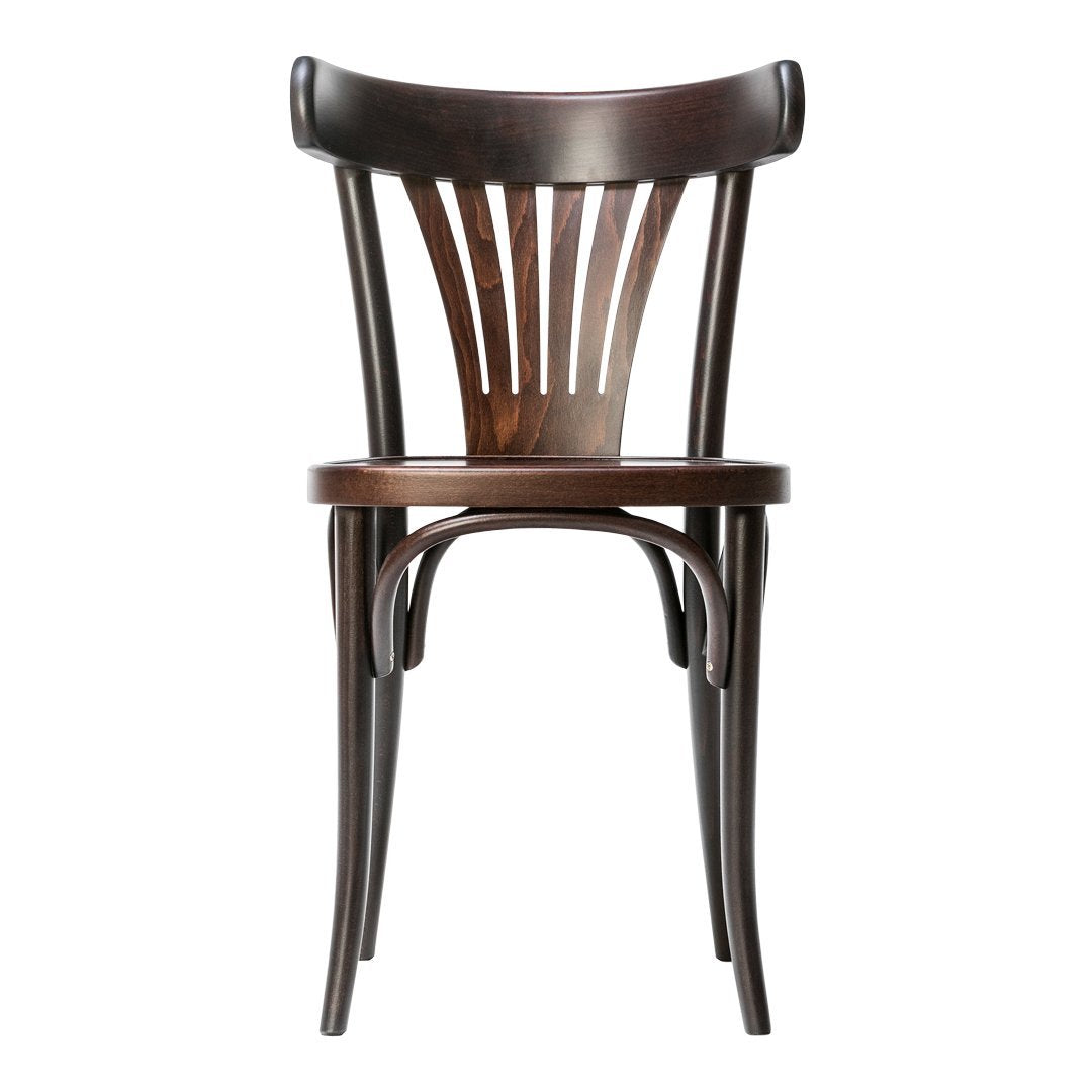 This chair was designed as early as 1885. Its distinct feature is the plywood fan filling the backrest. The upholstered version can be upgraded with decorative studs framing the seat and the top of the backrest.