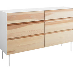Solid wood drawer fronts. Powder-coated steel outer case with plywood interior. Powder-coated steel legs with nylon foot glides.