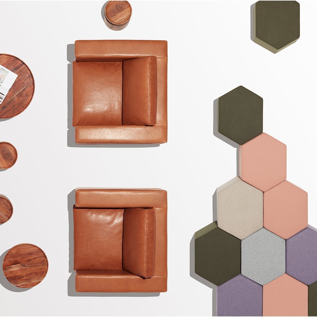 A six-sided solution, of course. Group to make a honeycomb of seating possibilities for your home or hive. Cap with the powder-coated steel Hecks Tray to provide a more stable and spill-friendly surface (sold separately).