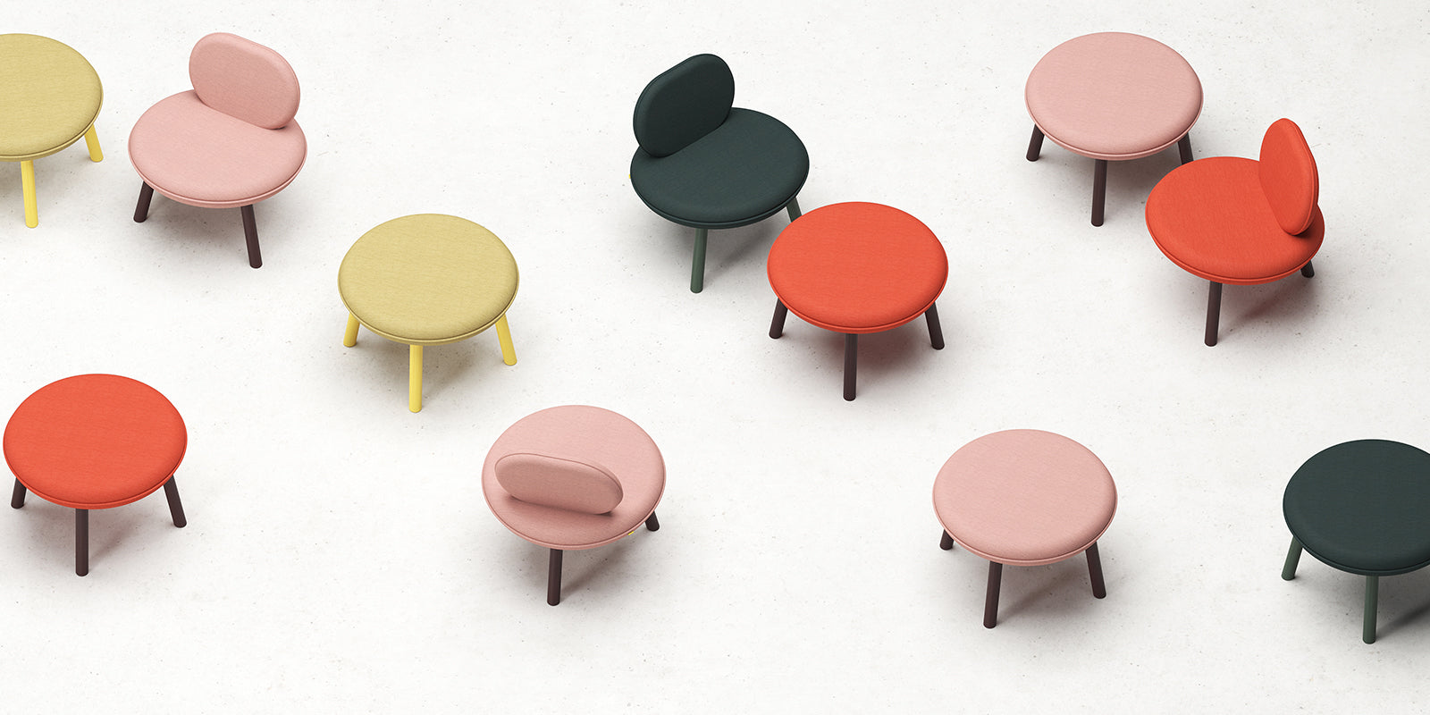 DUM Office brings a light-hearted approach to contract furniture with their clean, geometric forms. Dutch designers Wiebe Boonstra and Marc van Nederpelt transform simple circles and squares into playful, slightly oversized pieces that create character in large spaces while maintaining elegant functionality.