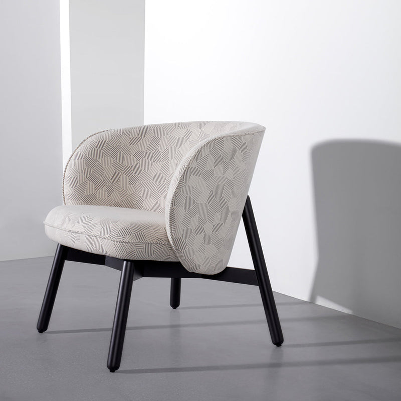 Inspired by the sweet curves of a macaroon, this distinctive chair transforms lobbies and living rooms alike with its perfect circles and organic forms. Kvadrat Febrik's knitted textiles embrace the three-legged frame and round seat, creating a piece that's both playful and sophisticated—geometric playfulness in its most inviting form.