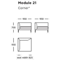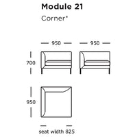 Module 21 (Corner): 37.4" W x 37.4" D x 27.6" H | 16.5" SH