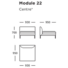 Module 22 (Center): 36.6" W x 37.4" D x 27.6" H | 16.5" SH