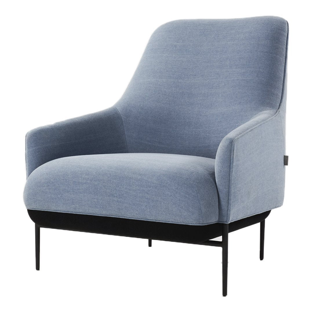 Distinguished by its sculptural profile, the chair features impeccably rounded edges that create a statement silhouette without overwhelming your space. The plush, generously proportioned seat invites you to sink in, while the precise tailoring of the upholstery—available in premium fabrics like Gabriel Connect with 98% post-consumer recycled polyester—reflects Wendelbo's commitment to sustainable luxury.