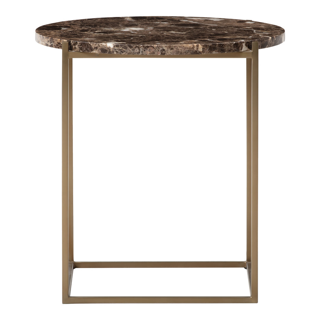 What elevates this design beyond conventional side tables is the compelling tension between its robust marble surface and the slender supporting structure. Available in either dramatic Nero Marquina marble or rich Dark Emperador marble, the circular top introduces organic patterns and luxurious texture. This natural element is suspended within either a black burnished steel or brass frame that provides both visual lightness and exceptional stability.