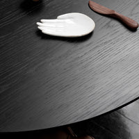 The perfectly circular tabletop continues this exercise in restrained elegance, offered in either practical black laminate or premium stained oak veneer with solid oak edges. This careful material selection provides versatility for various interior styles, from contemporary minimalist to warm Scandinavian modern.