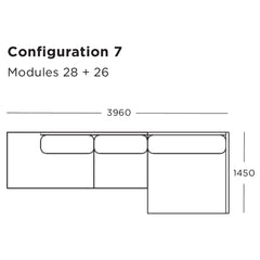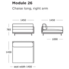 Module 26 (Chaise Long, Right Arm): 57.1" W x 57.1" D x 30.9" H