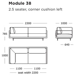 Module 38 (2.5 Seater, Left Corner Cushion): 90.6" W x 39.4" D x 30.9" H