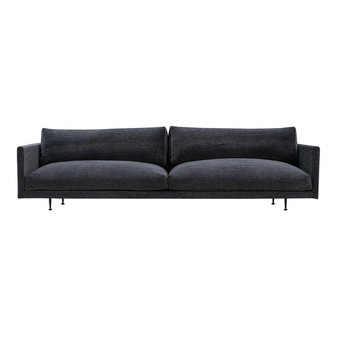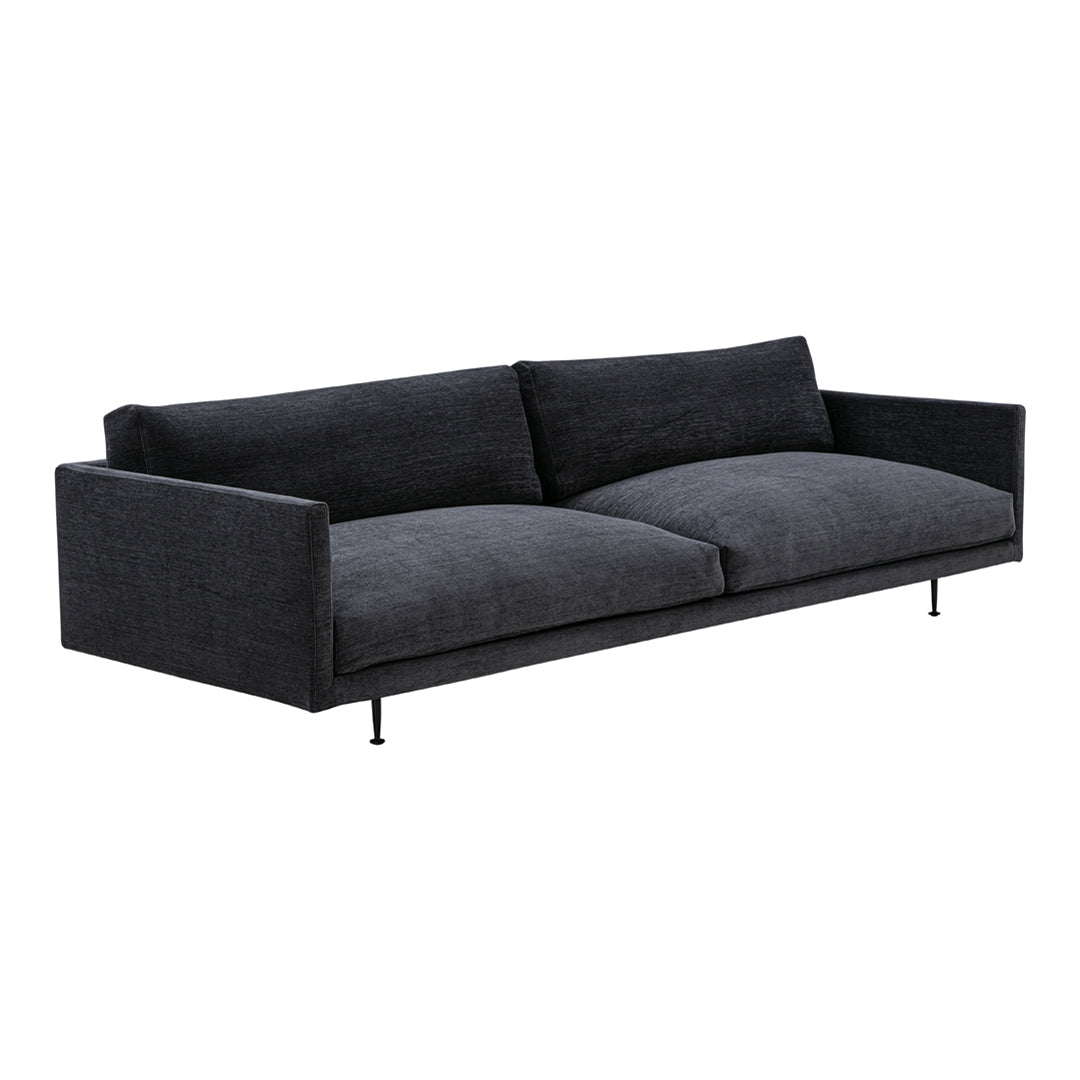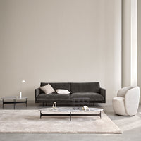Crafted as a voluminous low-lying lounge design, the Maho Sofa rests atop a slim and sharply defined frame in black powder-coated steel. The design is available in two seat heights and a range of upholstery options from Wendelbo’s curated edit of textiles and leathers.