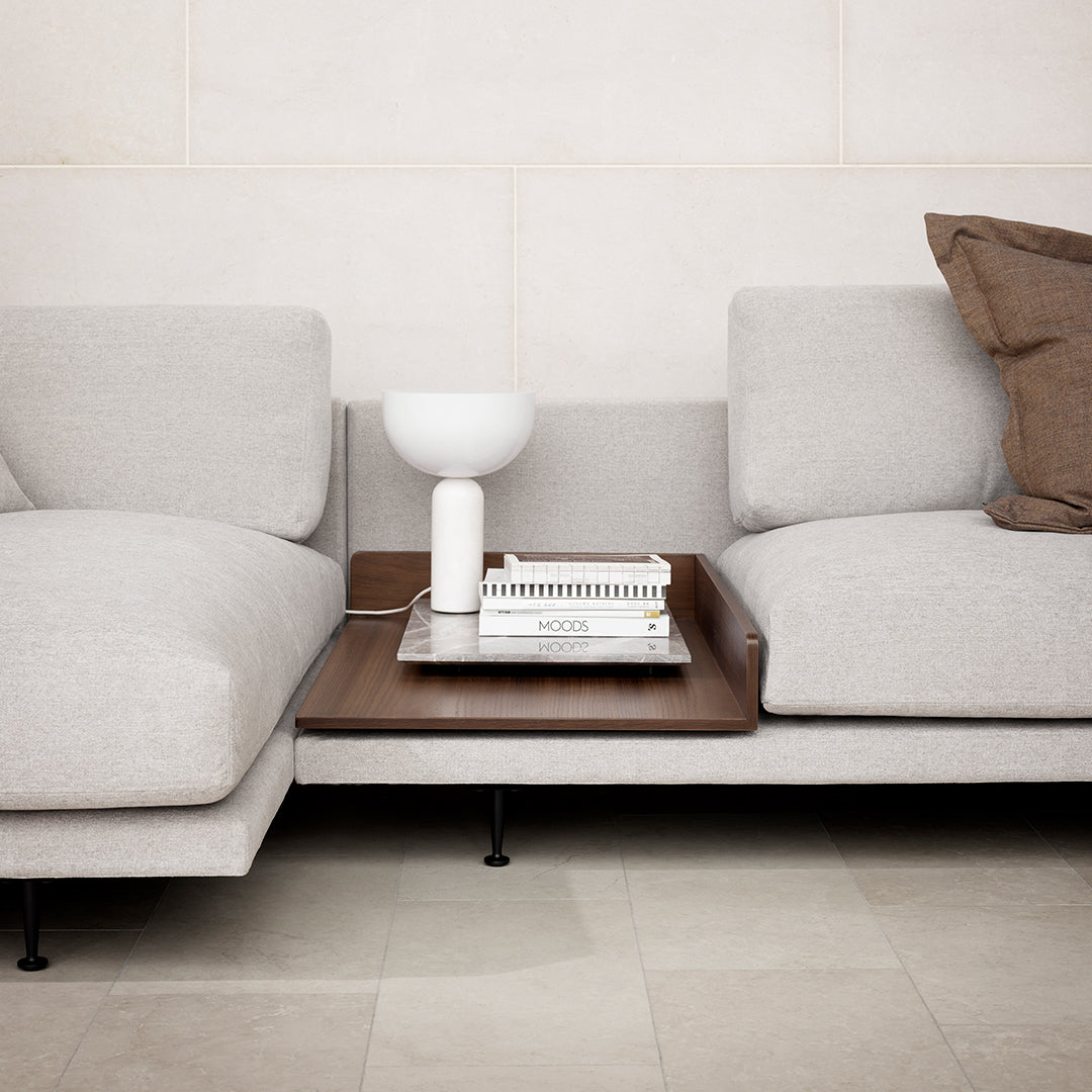 The Maho Pre-configured Sofa - Setup 1, designed by Henrik Pedersen of 365 North for Wendelbo, redefines contemporary lounging with its exquisite balance of architectural precision and sumptuous comfort. This thoughtfully curated arrangement combines the generous Chaise Long Left Arm module with a sophisticated 2-Seater Right Arm featuring an integrated light oak and Pietra Grey marble tray—creating the perfect intersection of luxury and functionality.