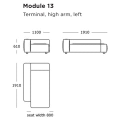 Module 13 (Terminal, High Arm, Left): 43.3" W x 75.2" D x 24" H | 16.1" SH