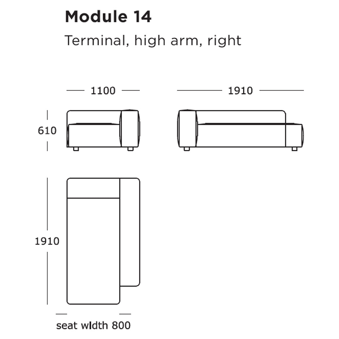 Module 14 (Terminal, High Arm, Right): 43.3" W x 75.2" D x 24" H | 16.1" SH