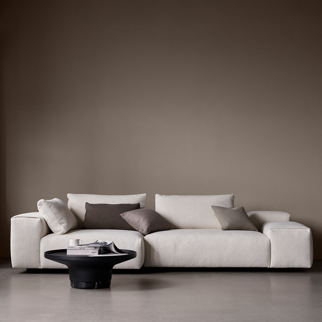 The Pontone Sofa is one that speaks volumes without making much visual noise, communicated through the folded details of its armrest, its pointy shapes and the lines of its loose cushions. Settle down in this generous sofa where absolute comfort is the common denominator.