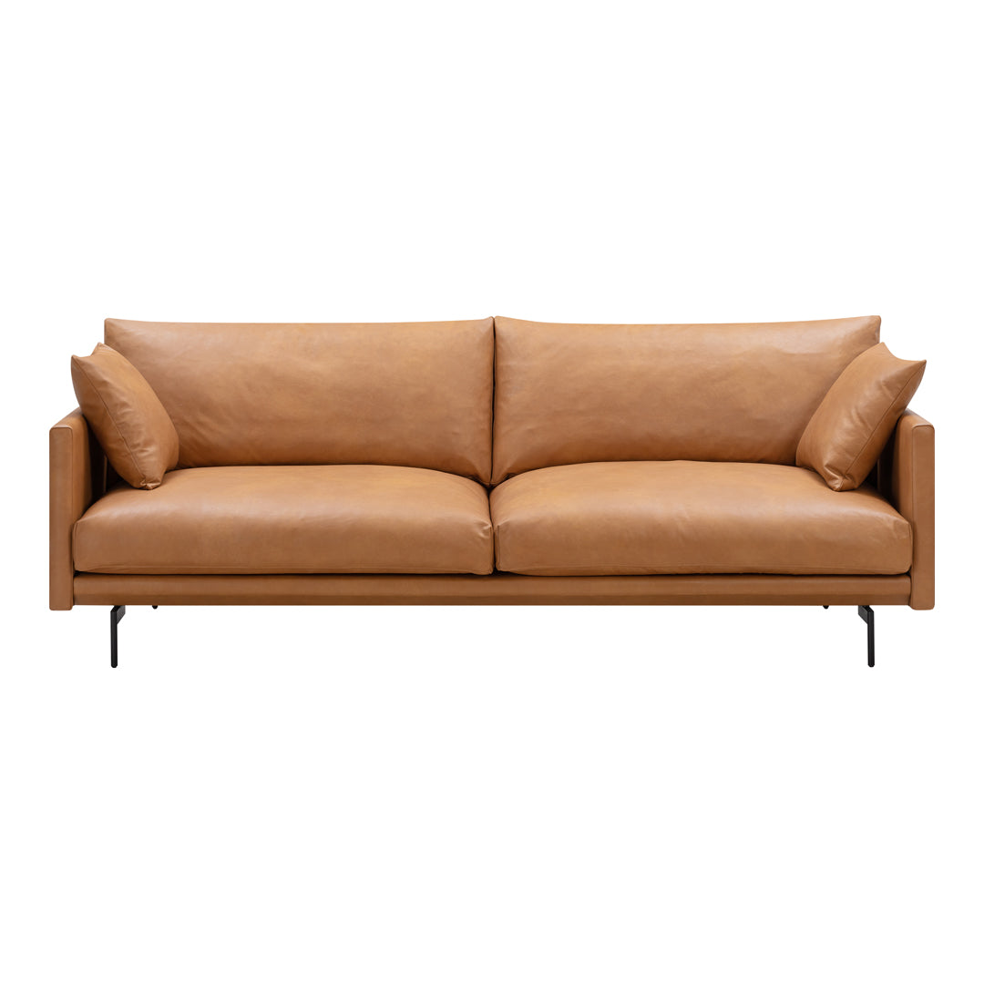 What distinguishes this modern sofa from conventional living room furniture is its refined visual tension between sharp, tailored exterior lines and plush, inviting cushions. The precisely defined edges create a structured frame that gives way to generously proportioned seating, offering the perfect balance of support and softness for extended lounging. This deliberate contrast results in a piece that's simultaneously minimal and substantial—ideal for both contemporary and transitional interior styles.