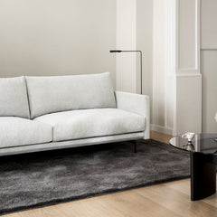 The sofa's elevated profile, supported by slender steel legs, creates a sense of visual lightness that makes even smaller living spaces feel more open and airy. This architectural approach allows the Trace to appear as if it's floating above the floor, making maintenance effortless while enhancing the room's proportional balance.