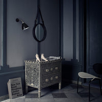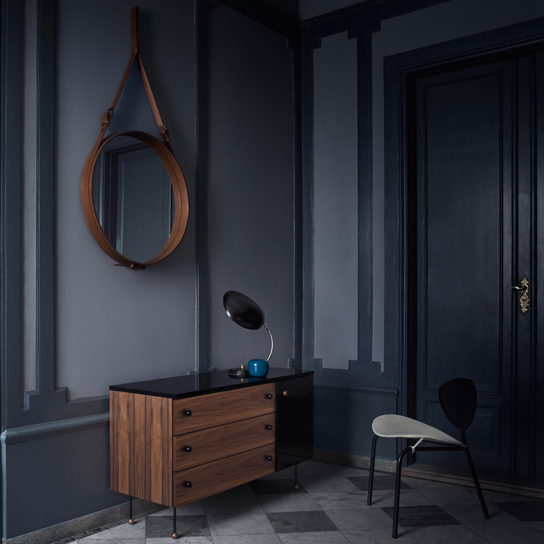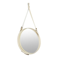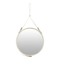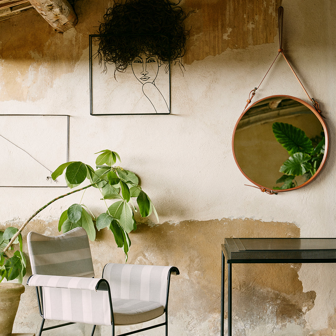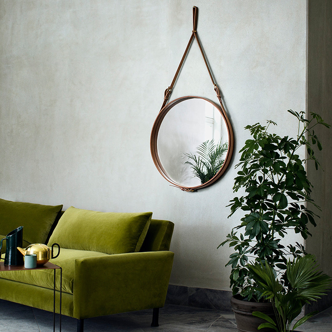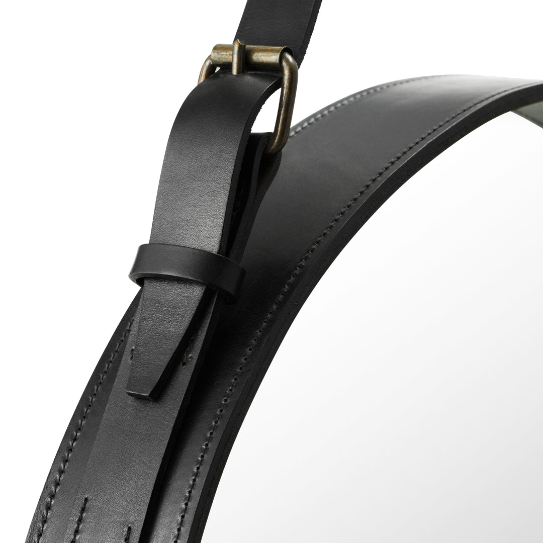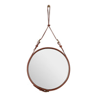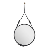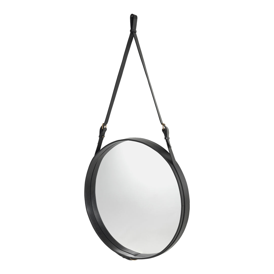 In 1950, Jacques Adnet formed a partnership with a famous French fashion house, where he developed a collection of discreet yet voluptuous leather-covered furniture and interior accessories. Known for being an innovative thinker, Adnet was one of the first designers to combine leather with glass. Accordingly, he designed the elegant, distinctive round leather mirror with equestrian inspired detailing - the Adnet Circulaire Mirror. Besides the remarkable leather and burnished brass details, the mirror in three sizes is also unique as the strap holding the mirror is in direct proportion to the dimension of it.