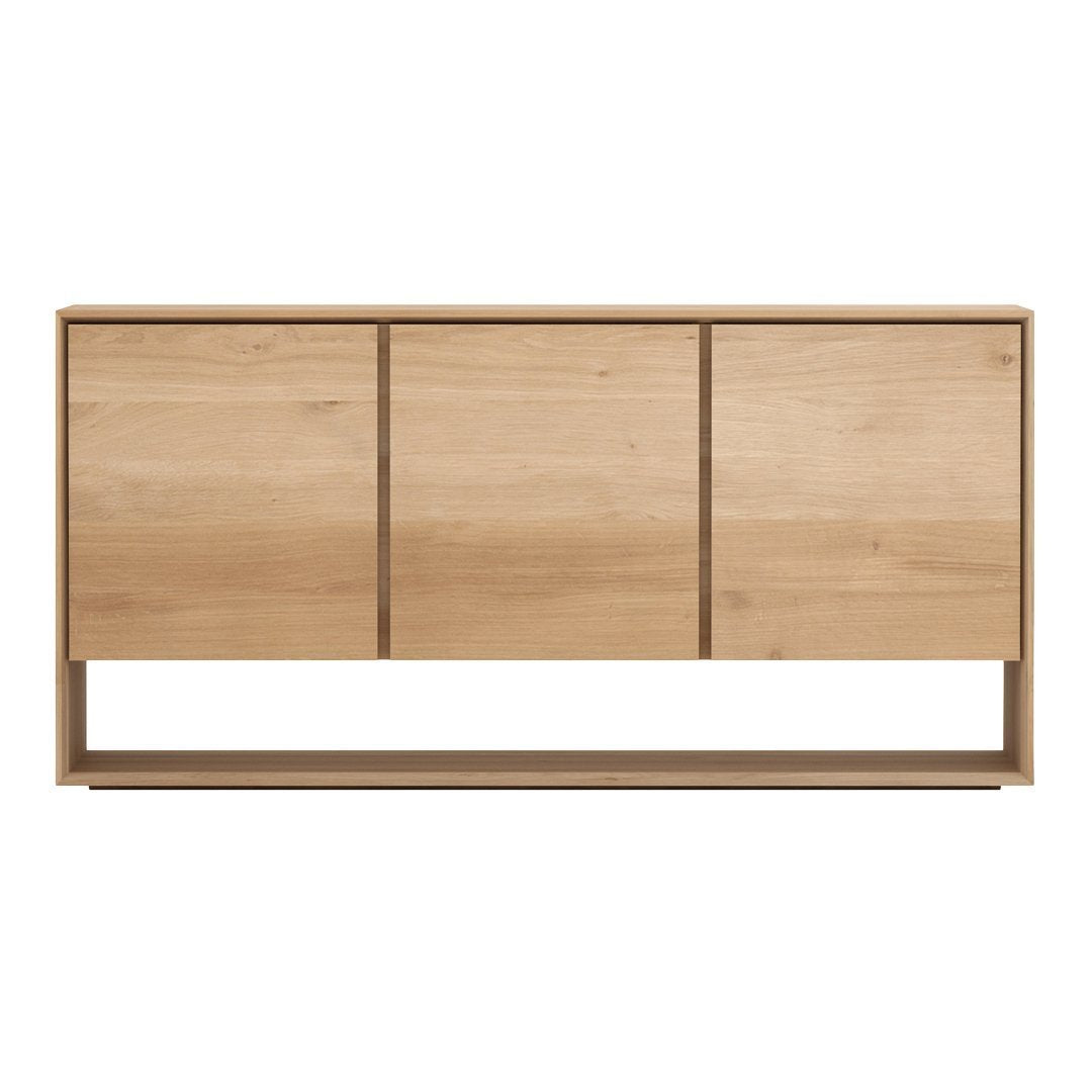 The Ethnicraft Nordic Sideboard, designed by Alain Van Havre, celebrates the pure beauty of solid oak through thoughtfully considered details that elevate everyday storage into architectural art. This sophisticated piece interprets Scandinavian design principles for contemporary living, creating a perfect balance between understated elegance and practical utility.