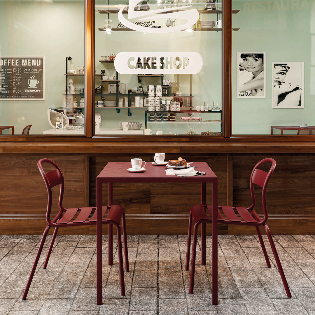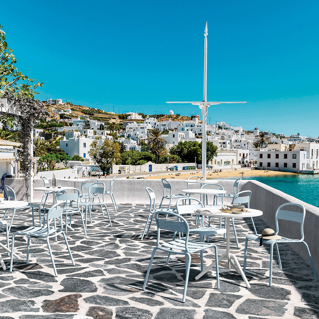 Especially suitable to be combined with tables, both for indoors and outdoors, it offers an excellent comfort.