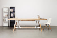 The STAMMTISCH is a "social" table, inspired by the table for the regular visitor in a cafe. Alfredo Haberli translated this idea for the home and project market.