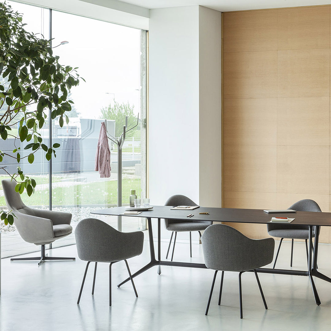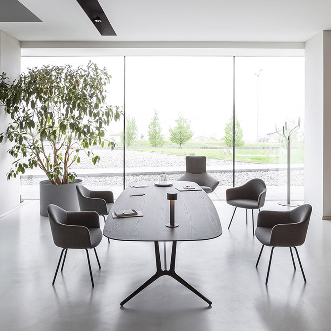 Like great editors who turn a novel into a masterpiece, Anderssen & Voll have re-edited a classic with a modernist design and created an armchair with lavish elegance and comfort. A versatile presence combines Nordic minimalism with Italian softness while perfectly blending in with spaces in the home, such as kitchens and living rooms, but also with contract spaces, from offices to hotels. With its sculptural shape, EDIT is easy to disassemble and can be entirely recycled. Its shell combines foam with rigid polyurethane, whereas the fabric upholstery is glue-free. Wooden parts are made of wood from FSC-certified forests. And the idea that brings harmony to each element is Lapalma's respect and love for nature.