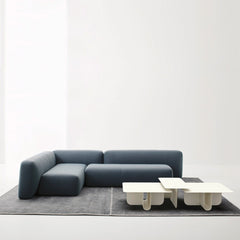 Suiseki is a collection of upholstered seats inspired, as the name suggests, by the Japanese art of arranging stones found in nature. Essential modules with organic volumes, where geometry leaves room for spontaneous and harmonious misalignments. Three starting elements: the seat, low and wide, the backrest and the armrest, to be combined together in a staggered balance of heights, widths and depths. This is how sculpture-sofas are born that respond to every type of use, from contract to domestic spaces.