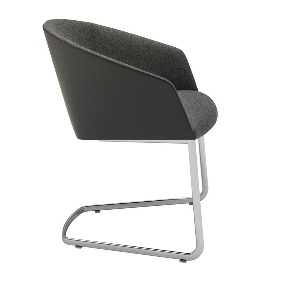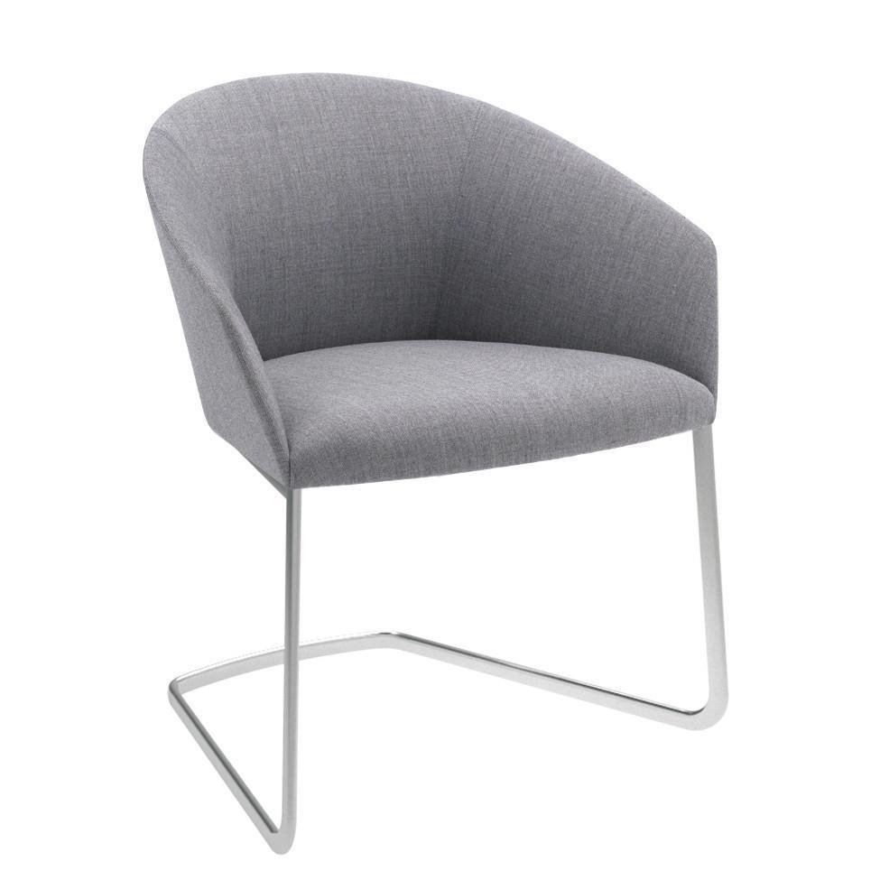 Armchair with upholstered seat and backrest, steel oval cantilever base in polished chrome finish.