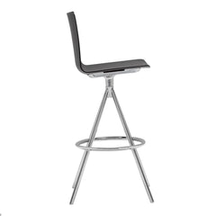 Counter stool with thermo-polymer shell, available in various colors and four-legged steel swivel base and finished in polished chrome, white or black. Optional fully upholstered shell or parallel upholstery stitching.