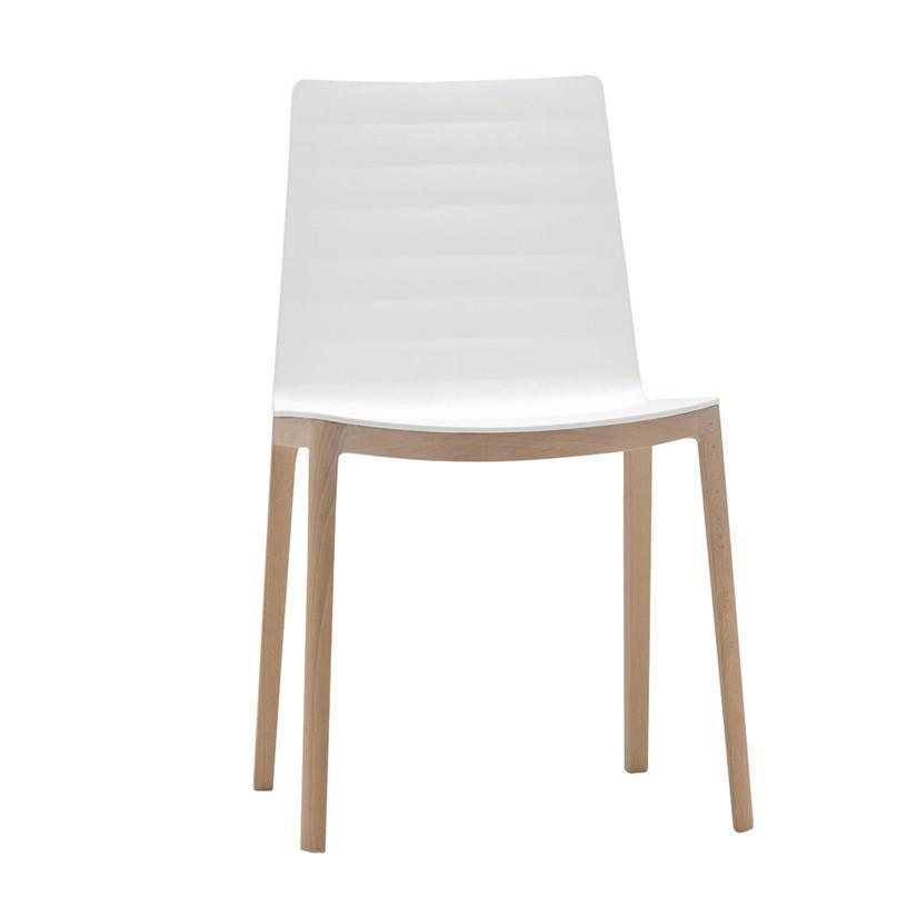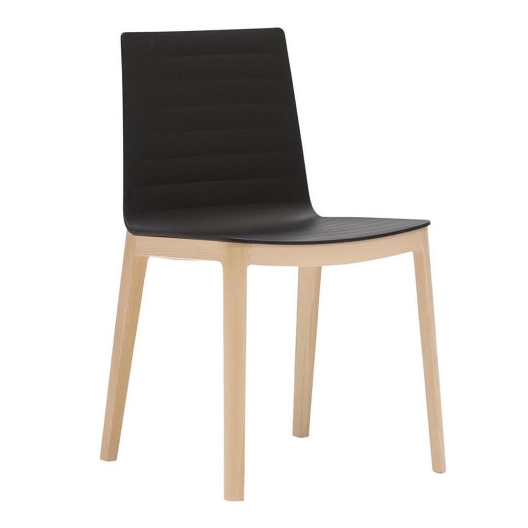 Chair with a 4-legged solid beech wood base. Thermo-polymer seat and backrest available in several colors.