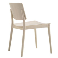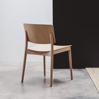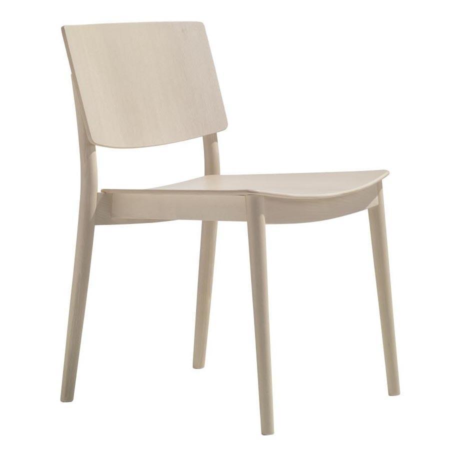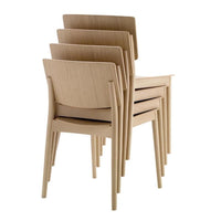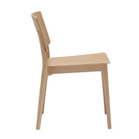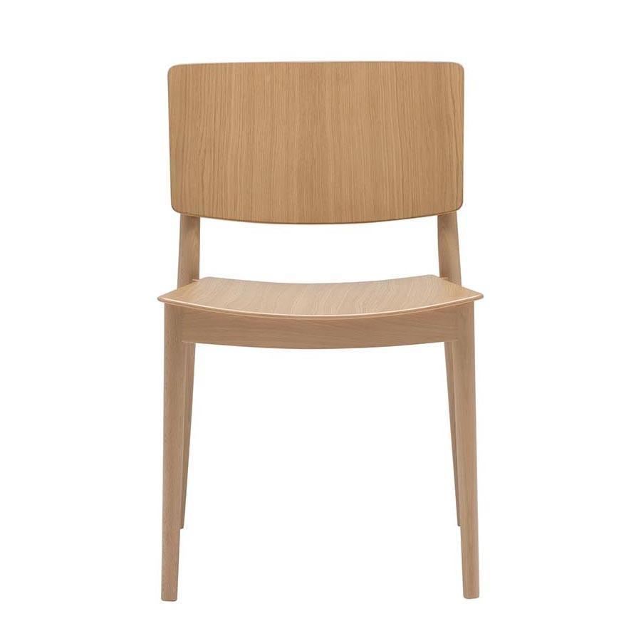 Stackable chair with oak board seat and backrest and solid beech wood frame.