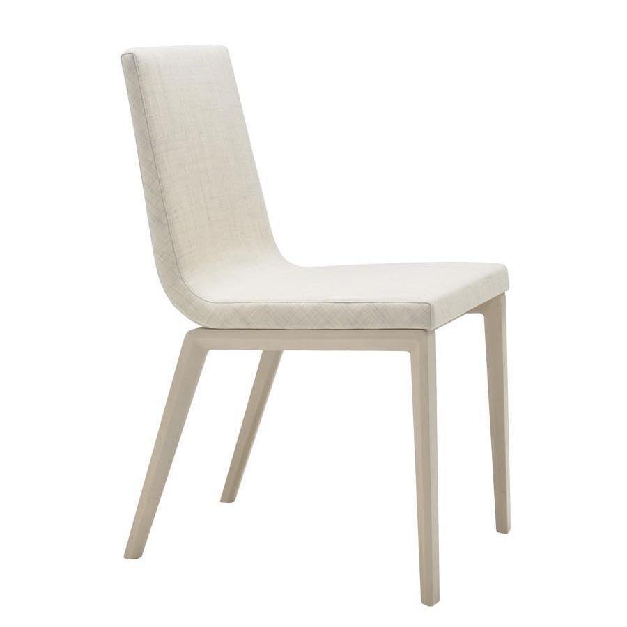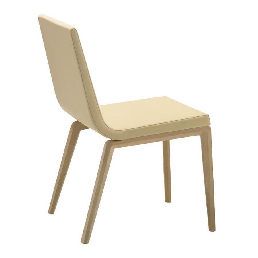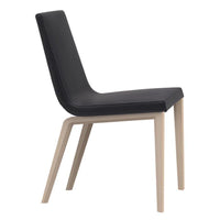 Chair with upholstered seat and backrest and 4-legged solid beech wood base.