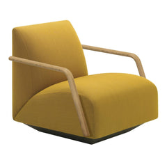 1-seater sofa with upholstered seat and backrest, solid oak wood arms and wood base.