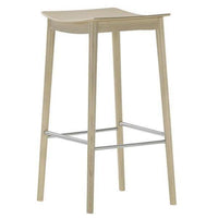 Backless counter stool with oak board seat and solid beech wood frame. The wood lacquer color options (White, Red, Black, Sand, Basalt Grey, Cayenne Red, Dark Grey, Yellow Mustard) are available in both matte and glossy finishes.