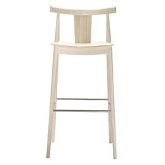 Barstool with upholstered seat and oak board backrest and solid beech wood frame. The wood lacquer color options (White, Red, Black, Sand, Basalt Grey, Cayenne Red, Dark Grey, Yellow Mustard) are available in both matte and glossy finishes.