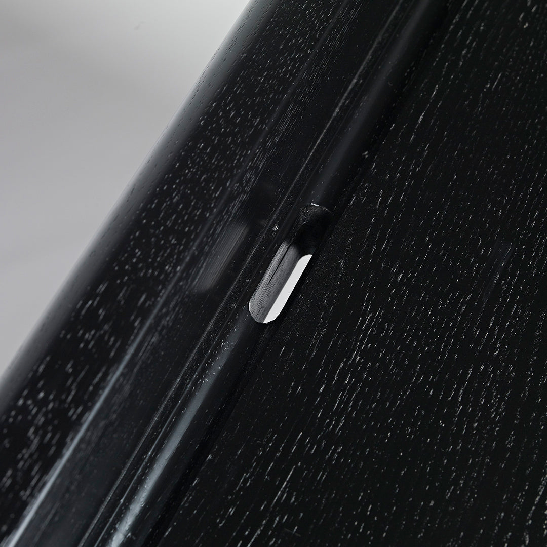 The black lacquered version is made of solid ash. Both versions feature our (peg-less) screw leg system.
