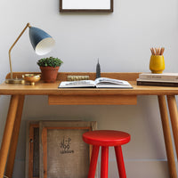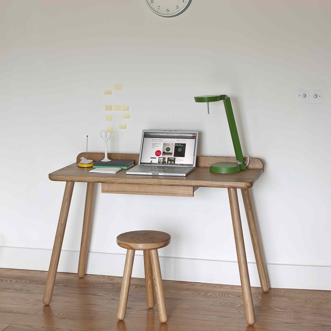 Reminiscent of an archetypal school desk, Desk One features a drawer, an indentation to hold pens and pencils and comes with a cable tidy to accommodate more contemporary desktop objects.