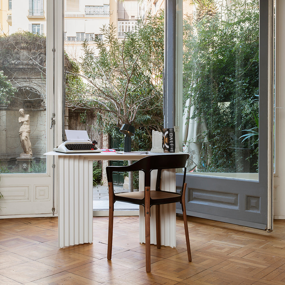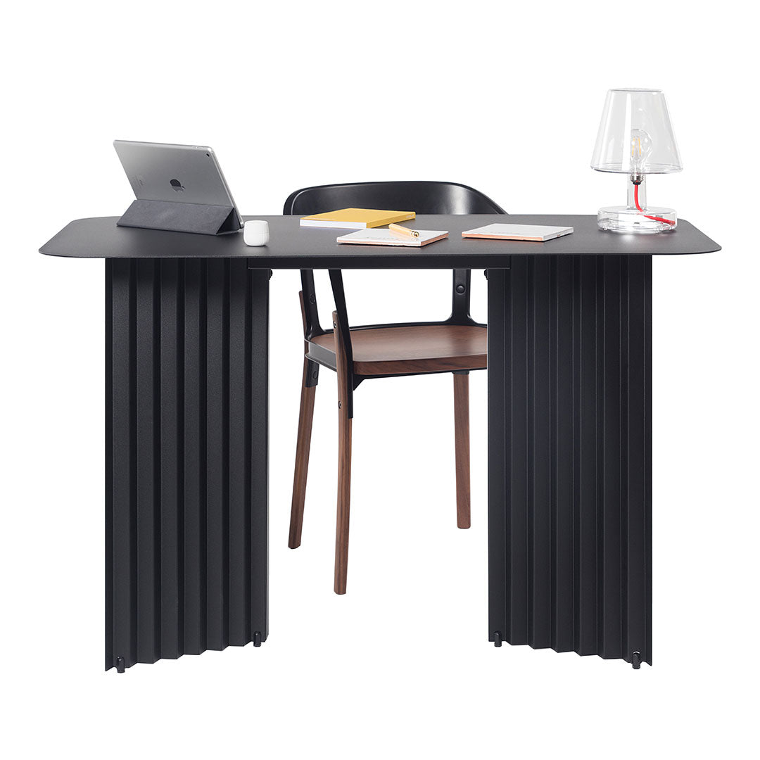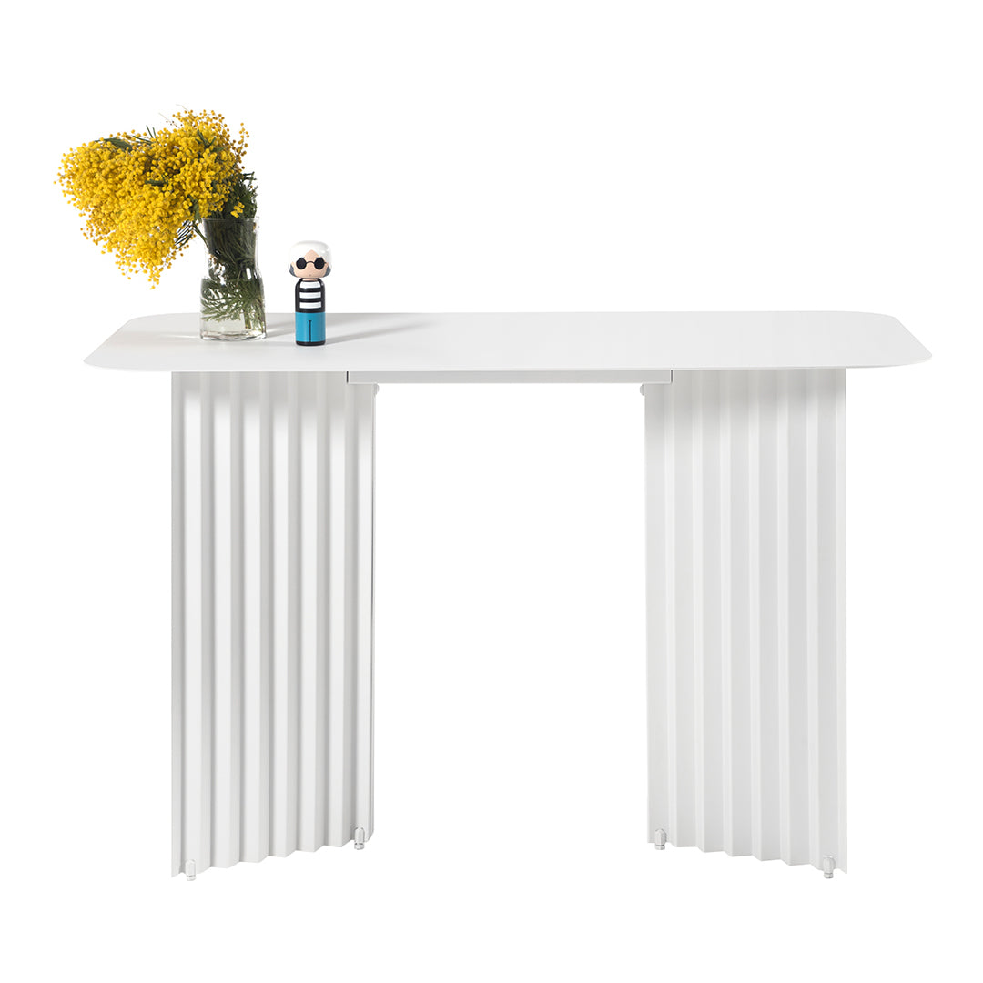 Plec is a collection of coffee and side tables that are as happy together as they are apart. With their accordion-shaped legs, all three Plec tables (large, medium and small) love creating light and shade effects at any time of day. The Plec table collection fits stylishly into any setting and space, whether grouped in front of the sofa, as a corner table in a reception area or waiting room, or in your garden surrounded by plants and flower, the Plec table is suitable for outdoor use thanks to the cataphoretic coating process applied to the steel. Plec tables comes in three sizes, in four colors (black, white, red and green) and with a metal or marble finish. Dimensions and colors can be customized to meet the needs of each project.