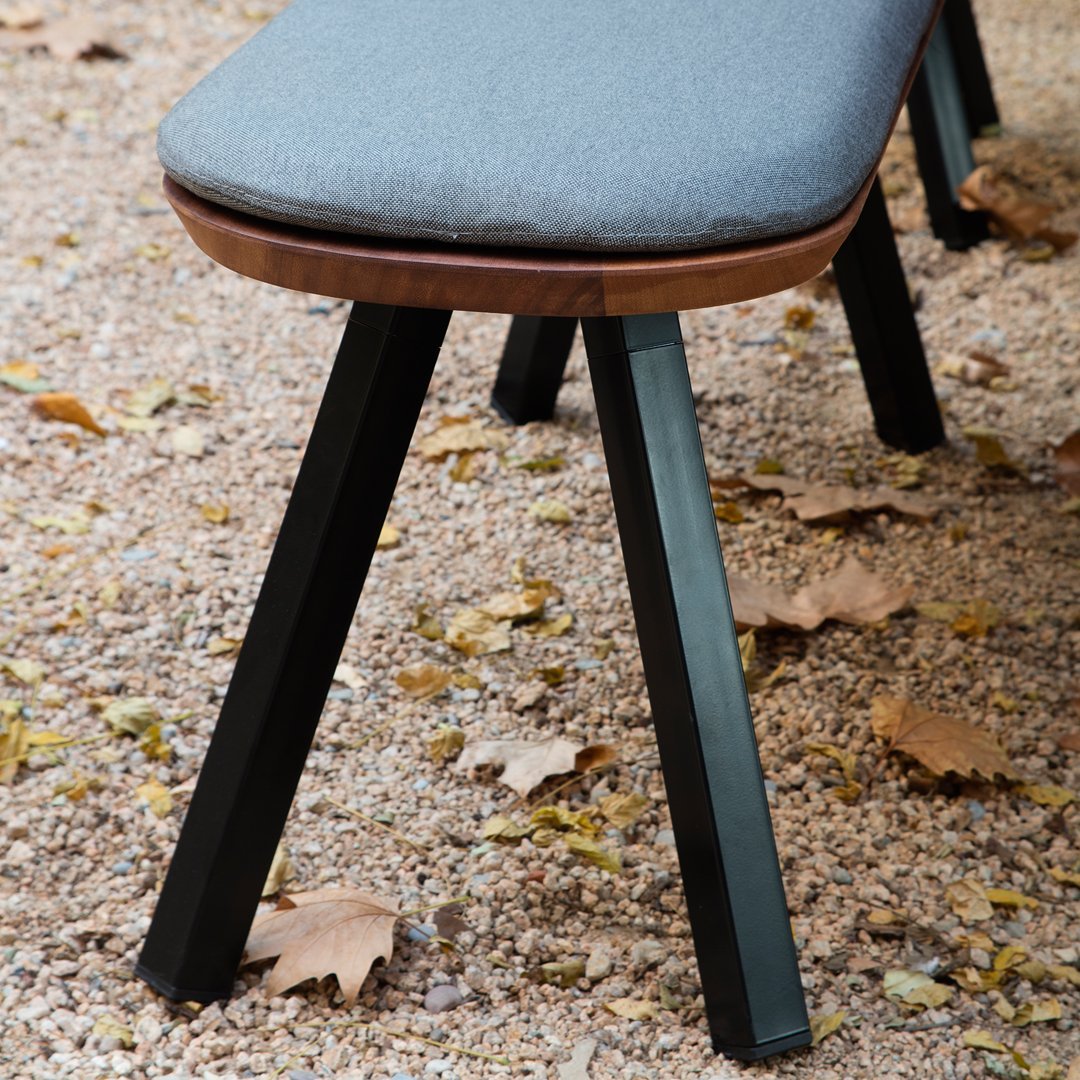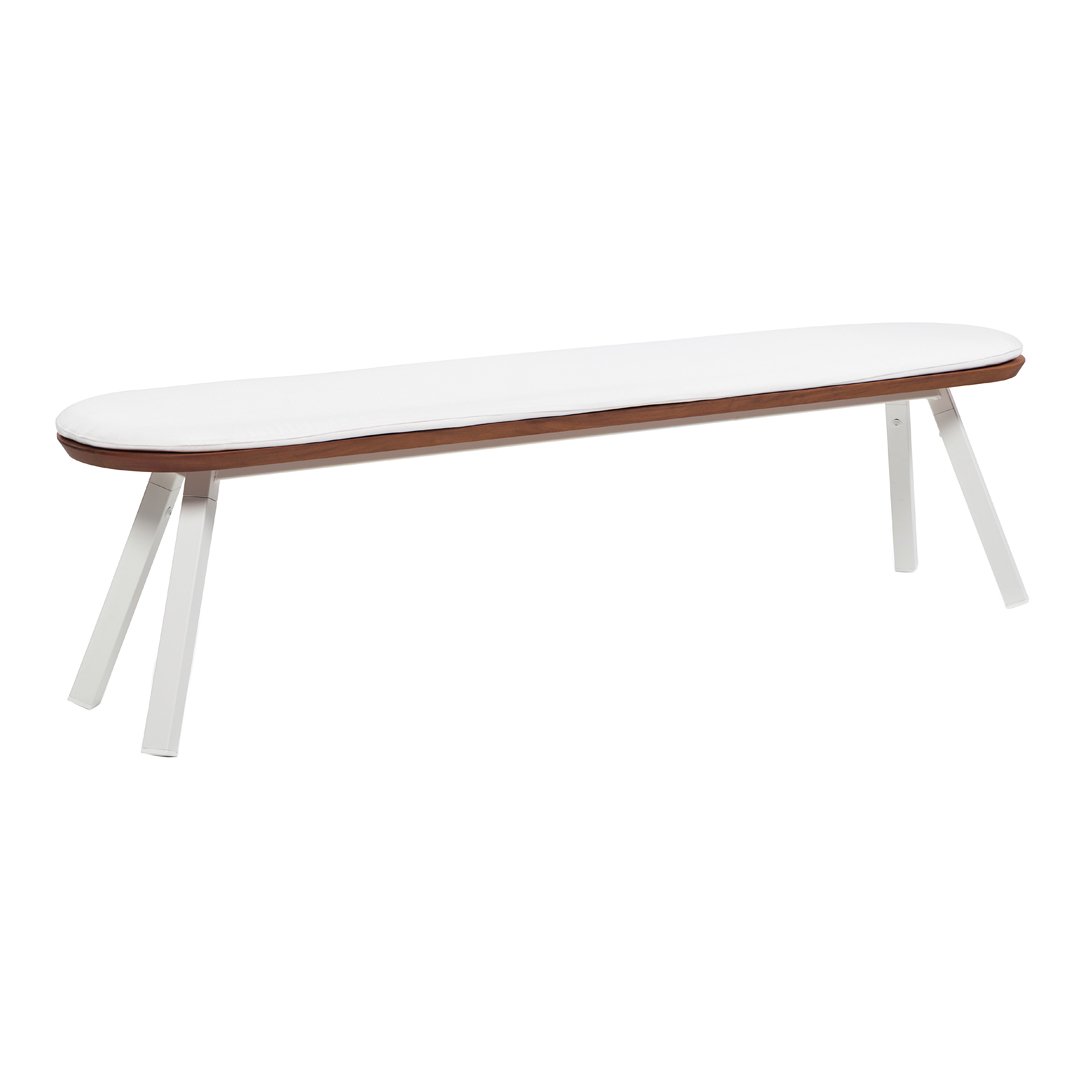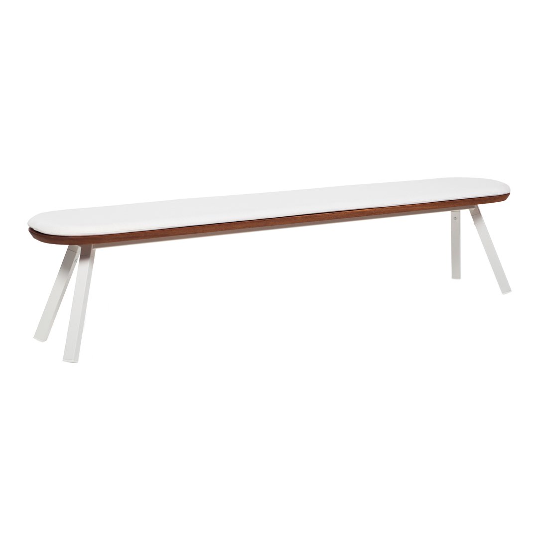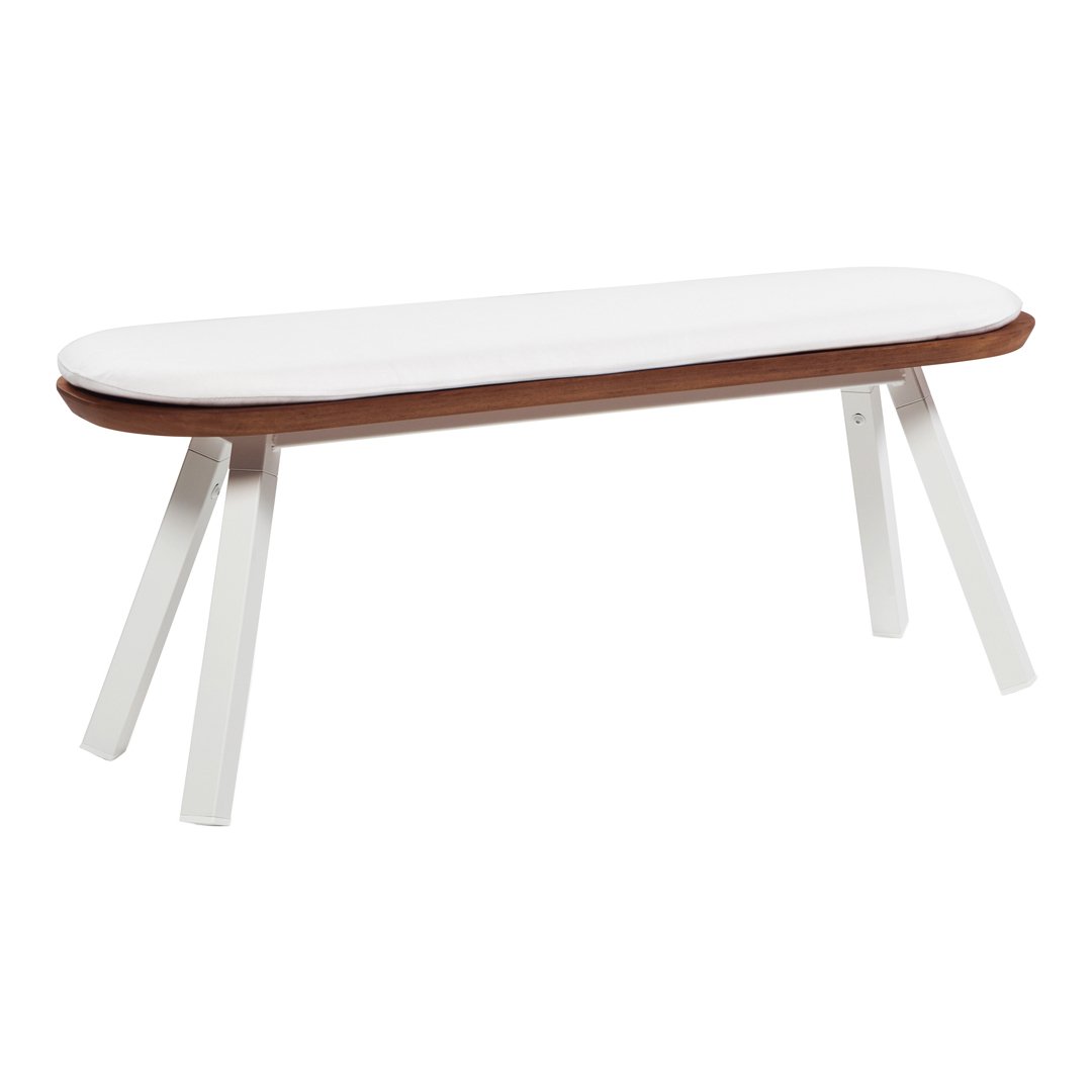The You and Me bench cushions are designed to work with the You and Me benches, available in the same lengths as the benches in Kvadrat fabric for indoor use only and Sunbrella for outdoor. You can choose to cover the bench entirely, or order a shorter cushion to allow some of the wood grain to show.