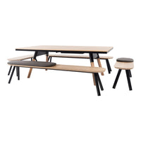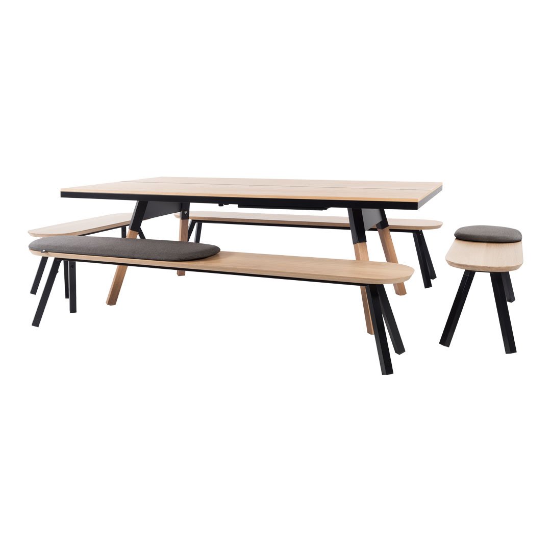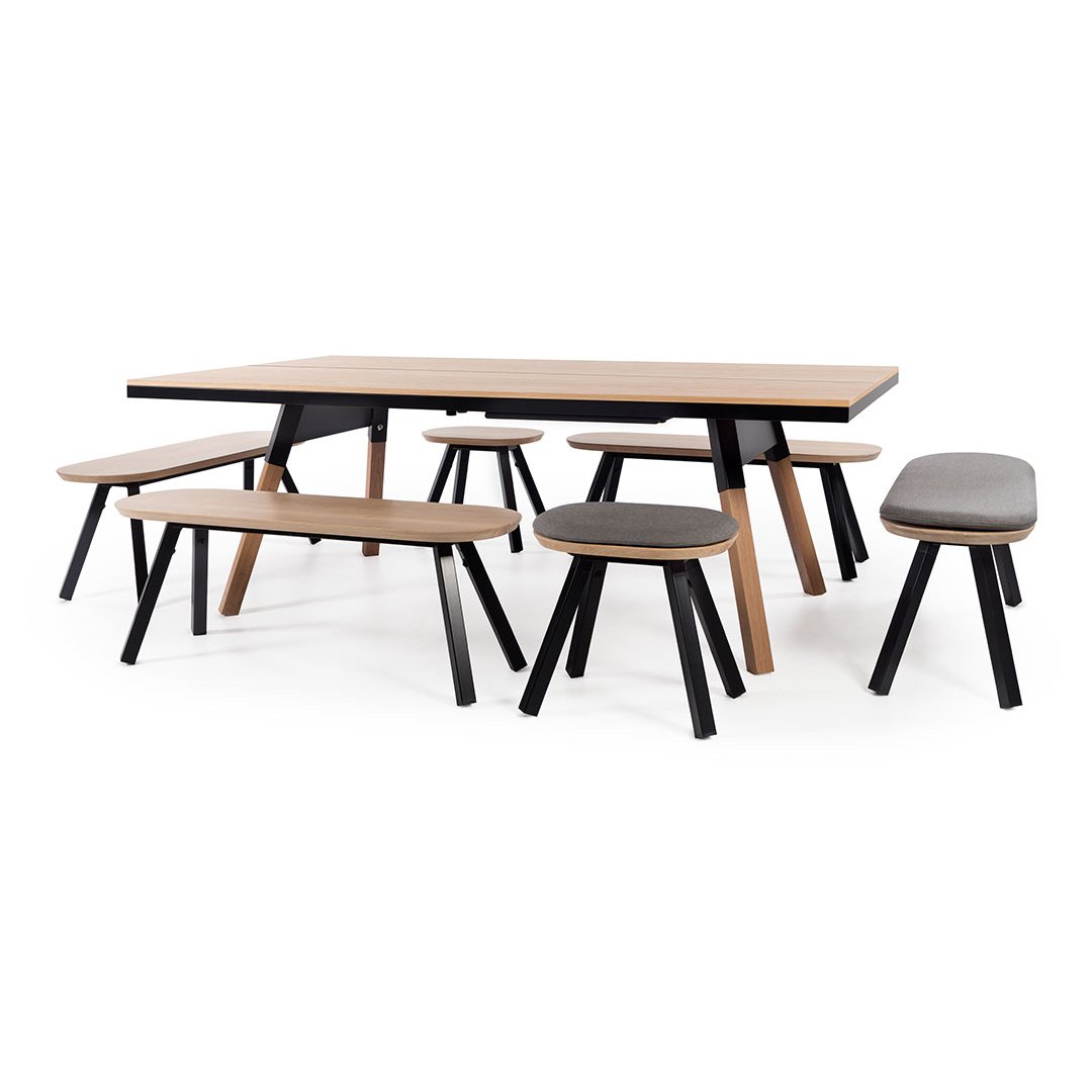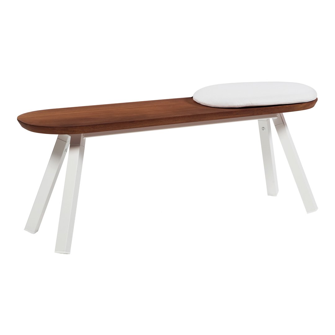 The You and Me bench cushions are designed to work with the You and Me benches, available in the same lengths as the benches in Kvadrat fabric for indoor use only and Sunbrella for outdoor. You can choose to cover the bench entirely, or order a shorter cushion to allow some of the wood grain to show.