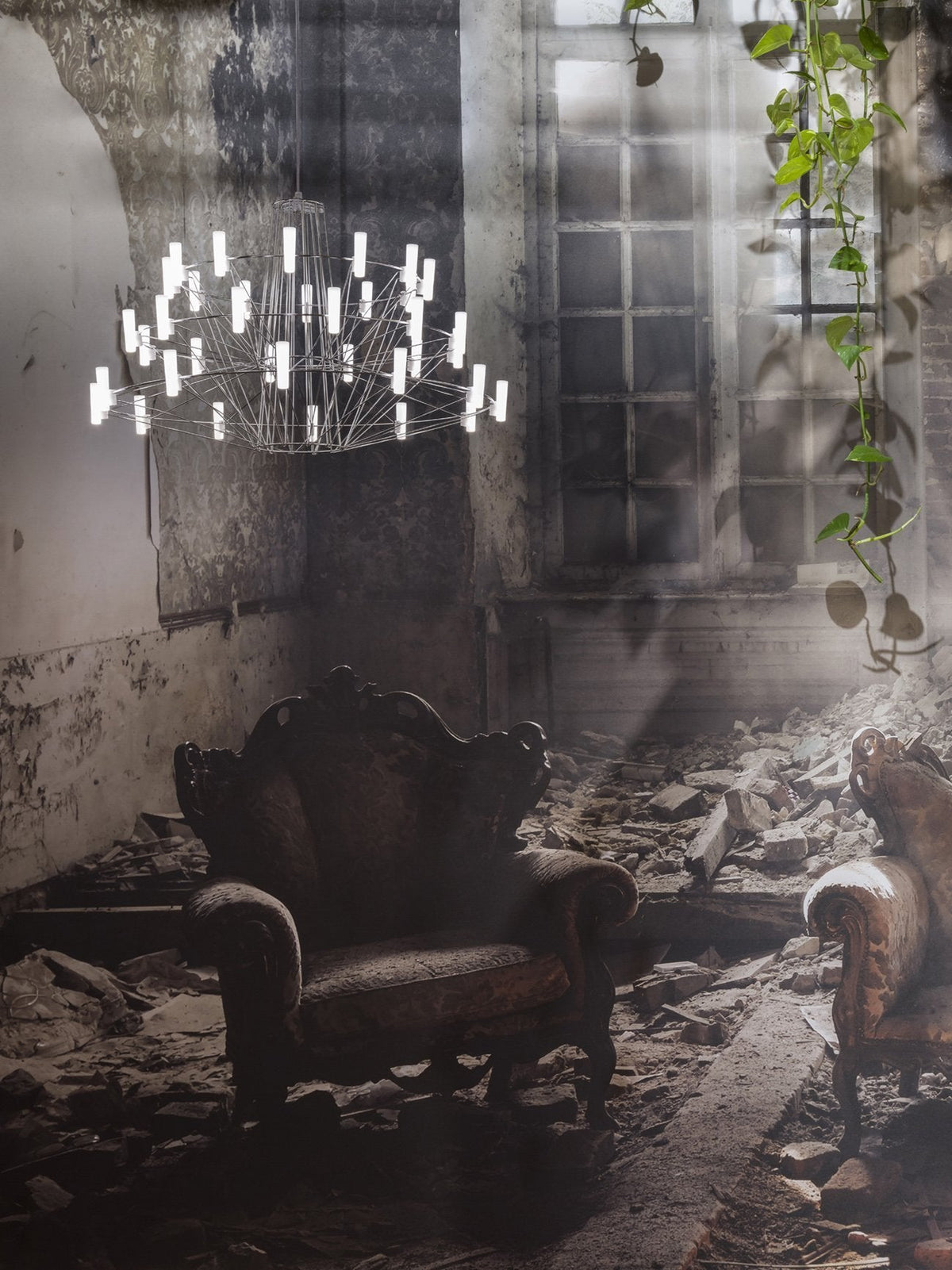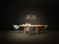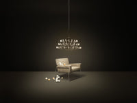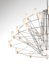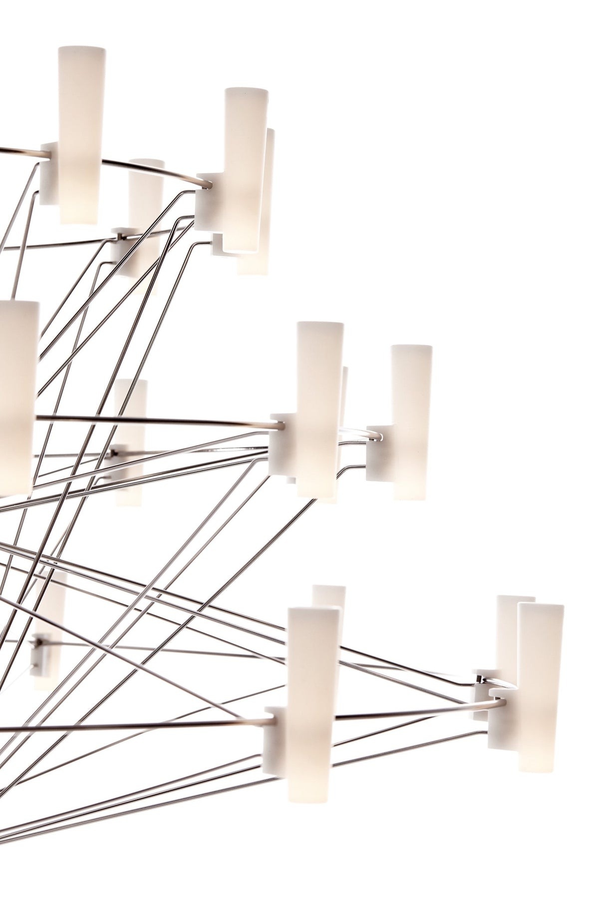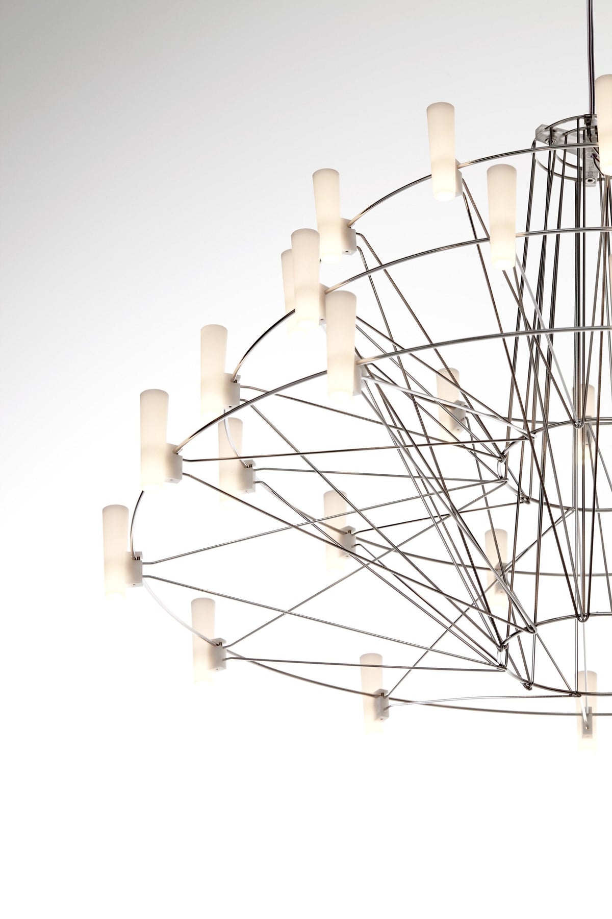 With the graceful sense of wonder, a beautiful mechanical doll appears to magically come to life in the famous ballet Coppelia. In the performance the ballerina traces, with sinuous movements, a delicate after-image in the air, which inspire the fluid motion in the design of Miyake's Coppelia Suspended Lamp.