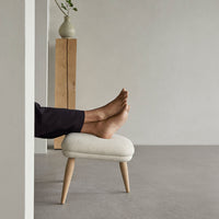 Designed for use with Arnold Madsen’s Oda Chair but equally purposeful alone, the Oda Ottoman profiles the same careful craft and embracing form, shaped to offer comfortable support when seated. Constructed according to a vintage version as there are no drawings of the original design, the Oda Ottoman profiles a sublime level of craftsmanship, evident in the intricacy of its upholstery. Available with legs in natural oak or walnut.