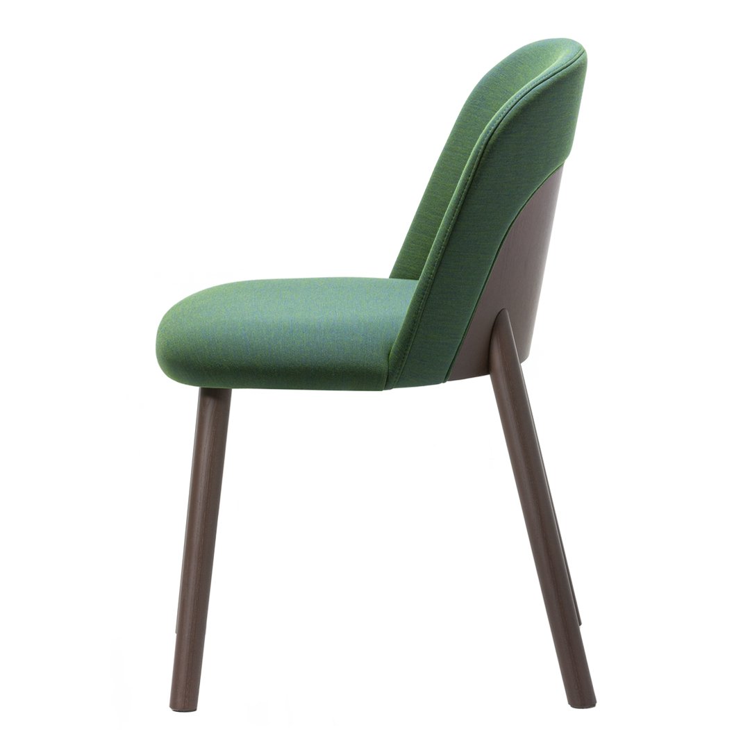 Designed to immediately catch people’s eye as they enter a room, the Doc collection chairs offer a modern interpretation of a classic model. They are best seen from the back, where the fabric on the backrest forms a frame around a wooden surface, which has a natural feel and to which the back legs are attached, balancing the materials and creating a warm, cosy mood. The Doc chair, small armchair and stool combine an ash wood frame with fire-resistant padding foam and upholstery. Soft and comfortable, cutomizable in all the fabrics and leathers in the catalogue, the Doc chairs are the ideal choice for any setting.