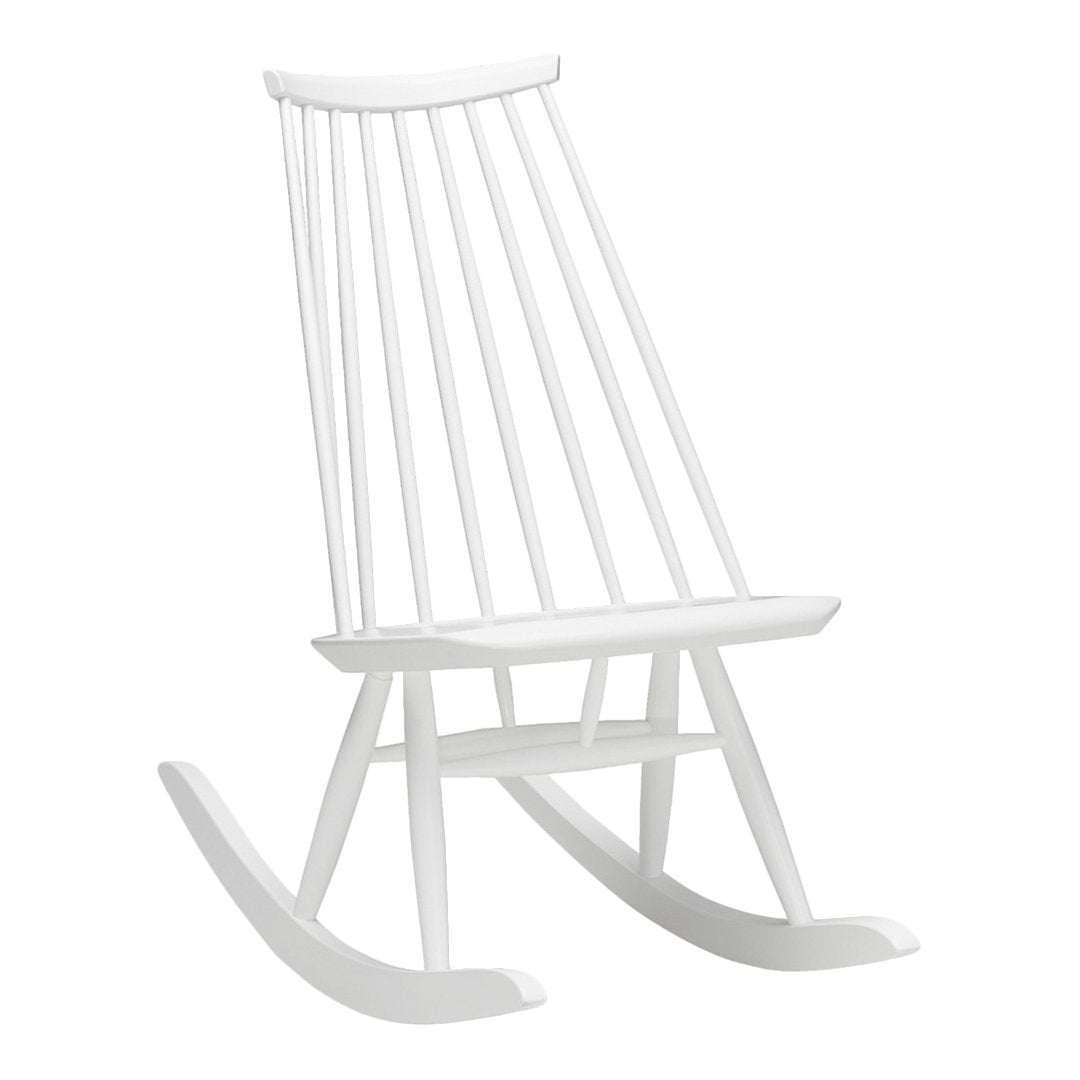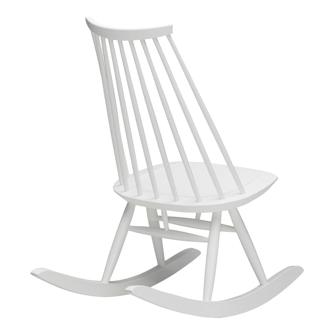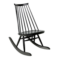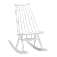 The Mademoiselle Rocking Chair is made from solid birch and was specifically developed for the home. Crafted using an age-old construction method, the spoke back contrasts strikingly with the smooth modernist curves of the seat’s softly rounded edge. In creating the Mademoiselle, designer Ilmari Tapiovaara drew inspiration from traditional Finnish chairs, then applied his own modern design approach. Also available as a lounge chair.