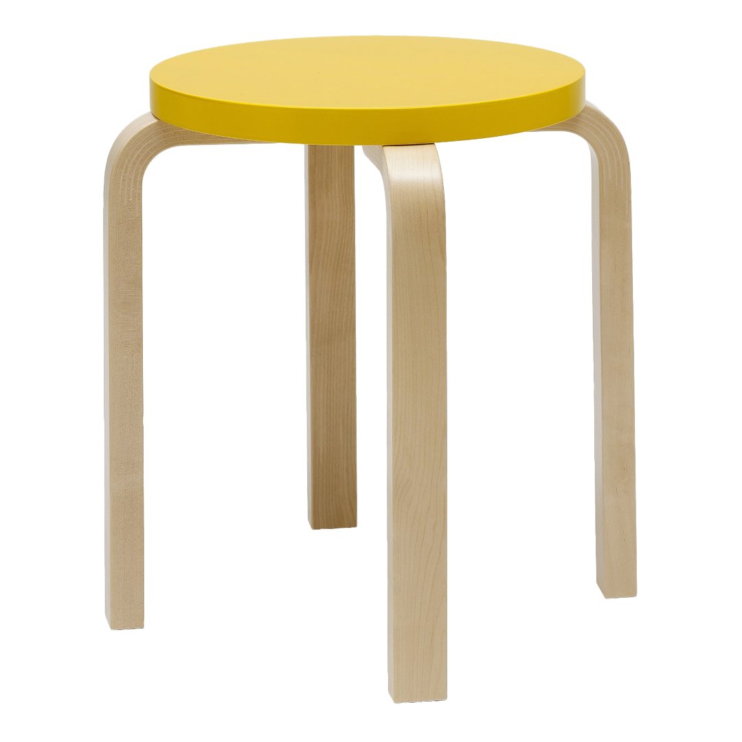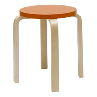 Alvar Aalto’s four-legged Stool E60 is the most elemental of furniture pieces, equally suitable as a seat, table, storage unit, or display surface. Projecting a sense of relaxed familiarity, Stool E60 is equally suited to the home, public buildings, and educational facilities. The legs are mounted directly to the underside of the round seat without the need for complicated connecting elements. Thanks to its geometry, the stool can be stacked to save space in a spiralling tower sculpture.