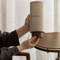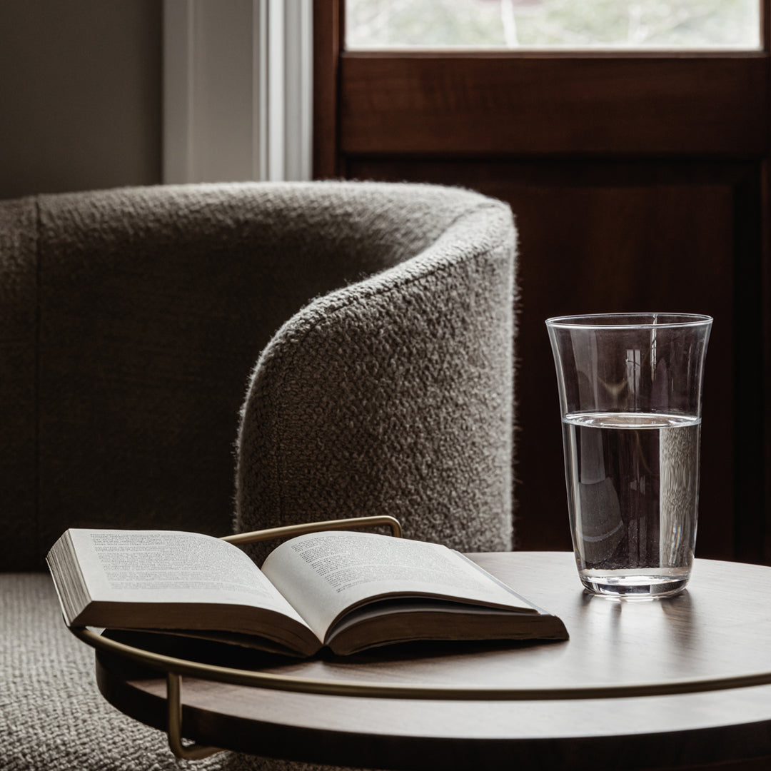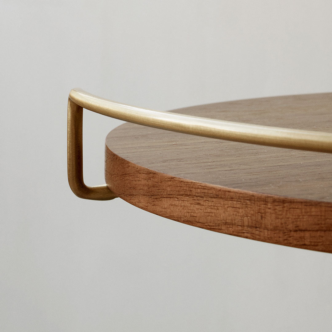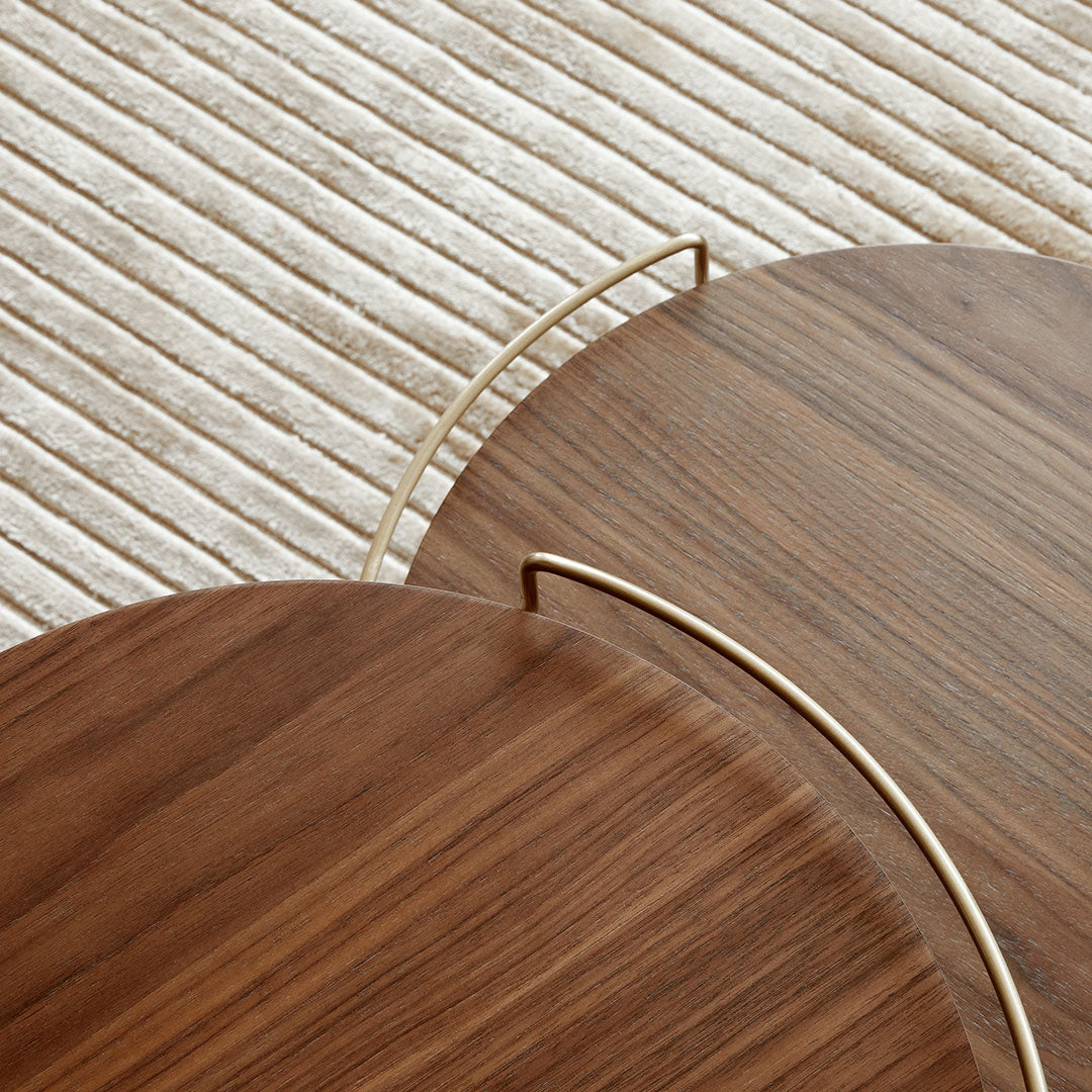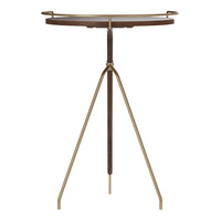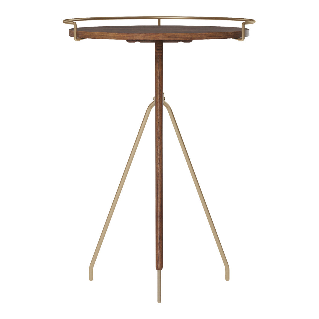 The Umanoff Side Table from Audo Copenhagen (formerly Menu) exemplifies timeless mid-century modern design that feels as fresh and relevant today as when Arthur Umanoff first conceived it in the 1950s. This reissued classic beautifully balances rich walnut wood with sophisticated brushed brass detailing, creating a striking visual harmony between materials that celebrates Umanoff's distinctive design language. The thoughtfully rounded top and tripod-inspired frame challenge conventional furniture silhouettes while maintaining perfect structural stability—a hallmark of Umanoff's innovative approach to furniture design during America's mid-century modern movement.