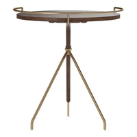 Despite its deliberately compact footprint, this versatile accent piece makes a significant design statement in any interior setting. The brass rim elegantly defines the walnut tabletop while serving the practical purpose of preventing items from accidentally sliding off—showcasing Umanoff's commitment to marrying form with function. Available in two perfectly proportioned sizes (Low: 17"L × 17"W × 17.7"H or Tall: 17"L × 17"W × 23.6"H), each version can support up to 11 pounds, making these tables ideal for displaying everything from cocktails and coffee cups to sculptural objects and treasured decorative pieces.